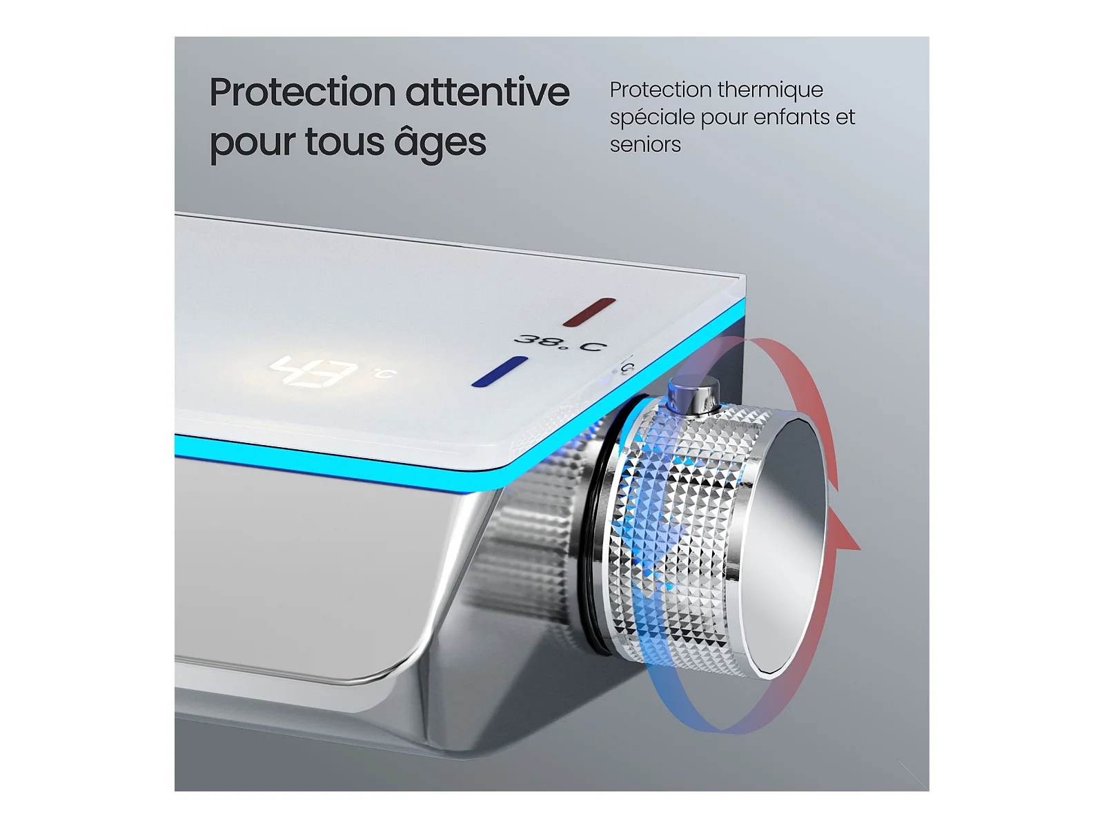 EMKE Duschsystem mit Thermostat, Chrom, LED-Beleuchtung, Regendusch-Effekt mit 3 Strahlarten, mit unterem Auslauf