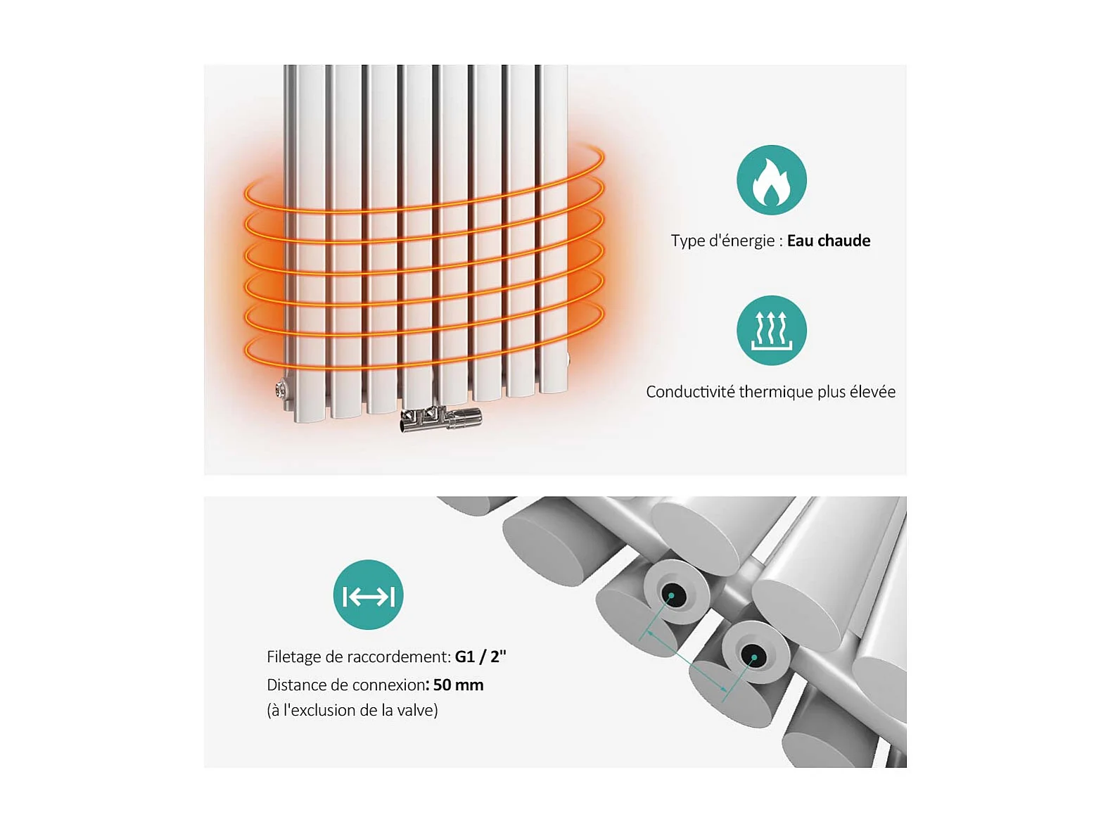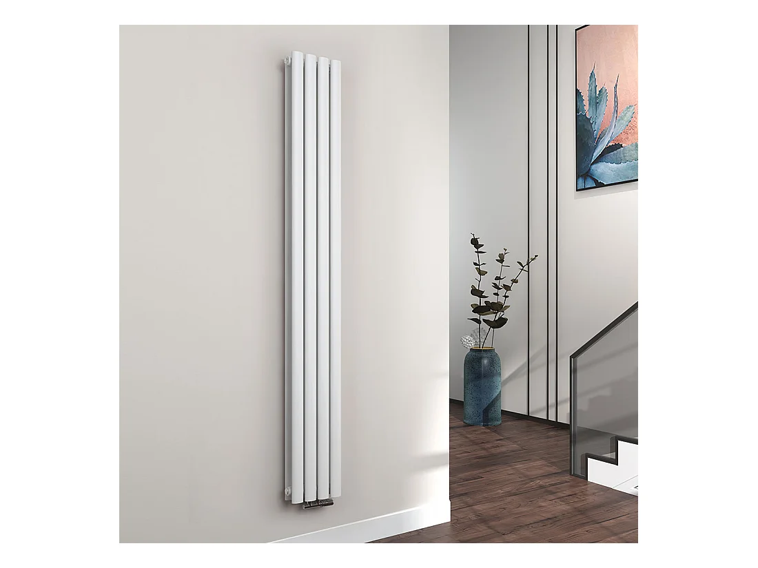EMKE Oval Heizkörper Klein 1800x240mm, Design Heizkörper Schmal Hoch Doppellagig Röhrenheizkörper Mittelanschluss Heizung Weiß 678W