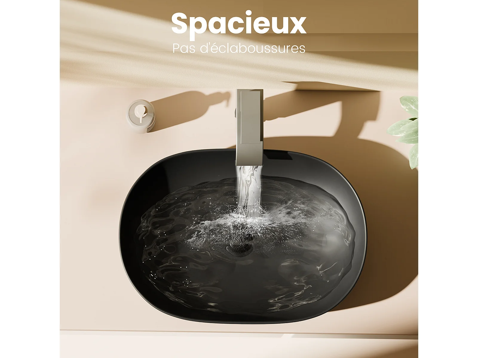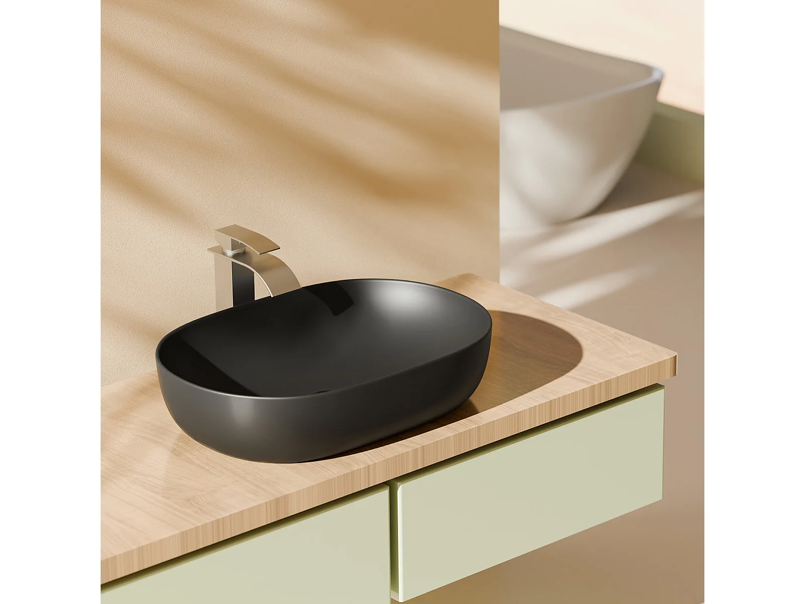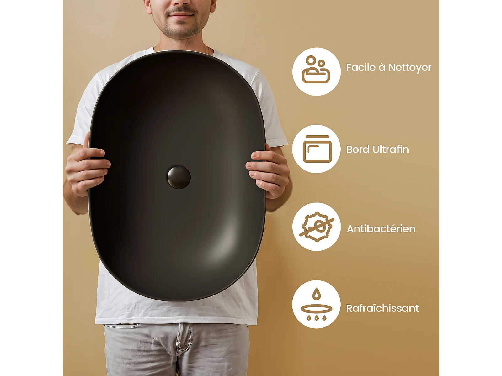 EMKE Ovales Aufsatzwaschbecken, 600 x 415 x 135 mm, Keramikwaschbecken, Mattschwarz