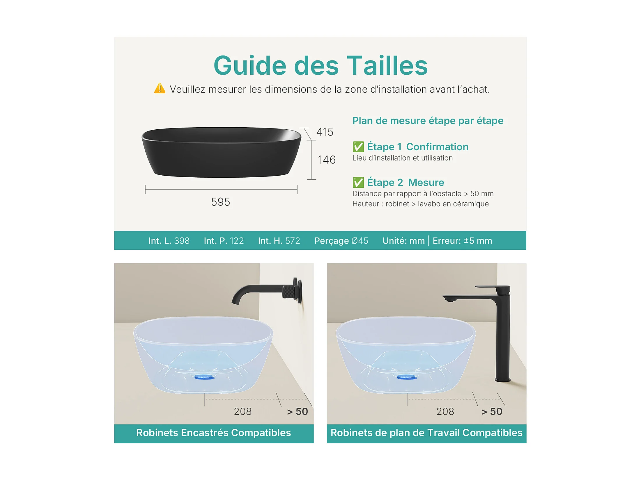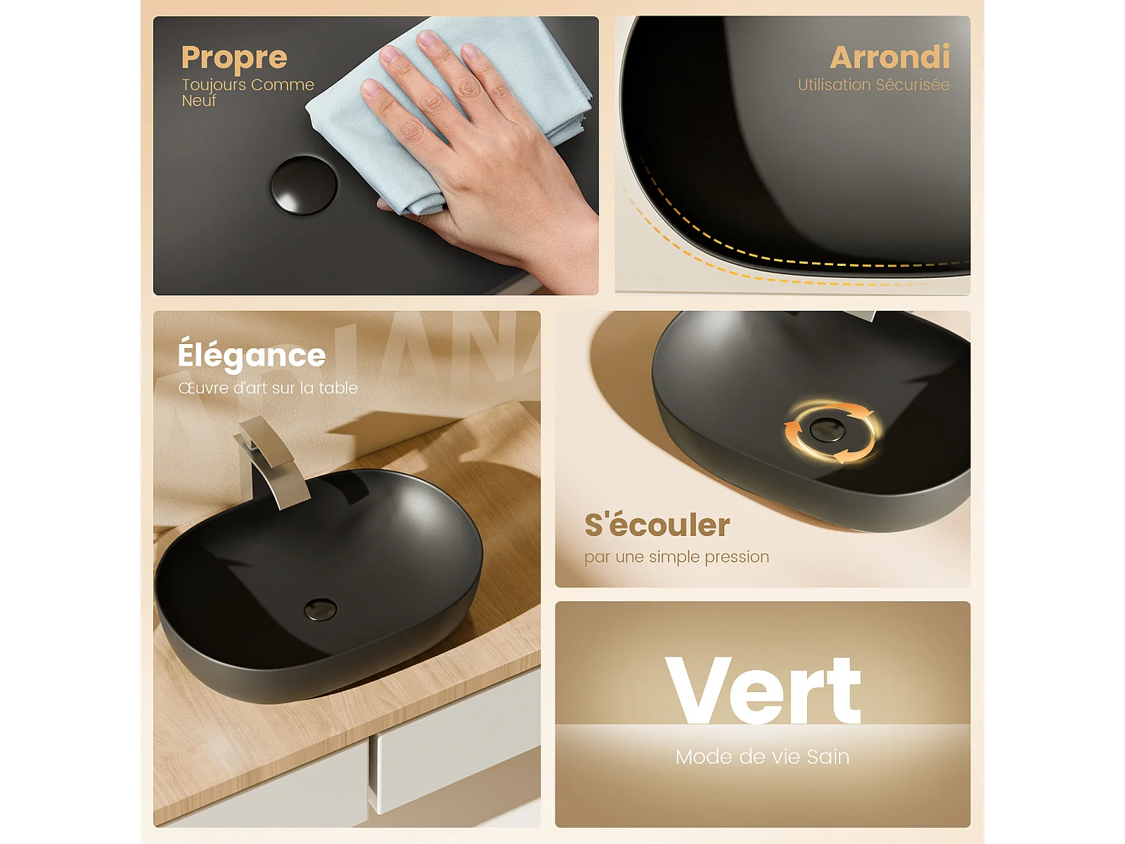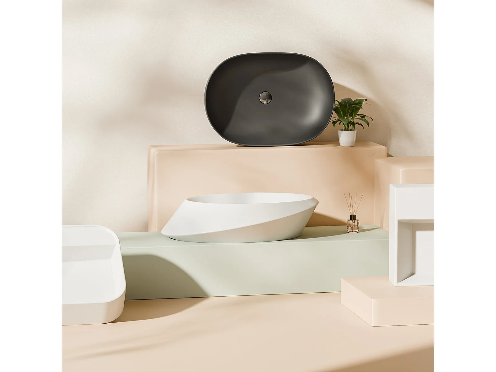 EMKE Ovales Aufsatzwaschbecken, 600 x 415 x 135 mm, Keramikwaschbecken, Mattschwarz