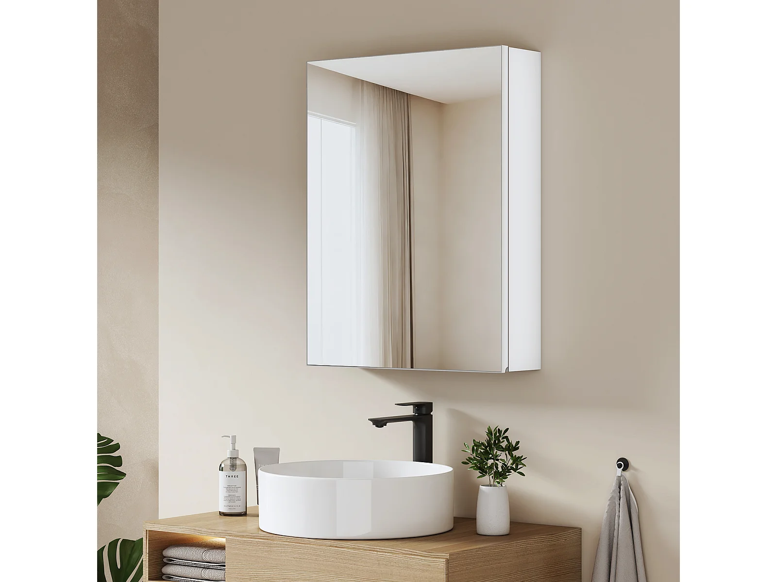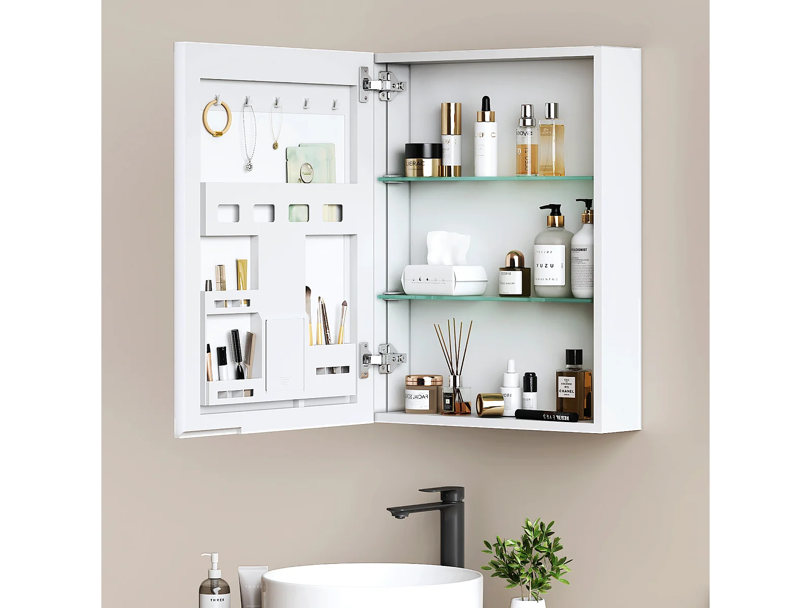 EMKE Spiegelschrank Bad hängend 1 Tür mit Spiegel höhenverstellbare Glasablagen weiß 65 x 50 x 14,5 cm