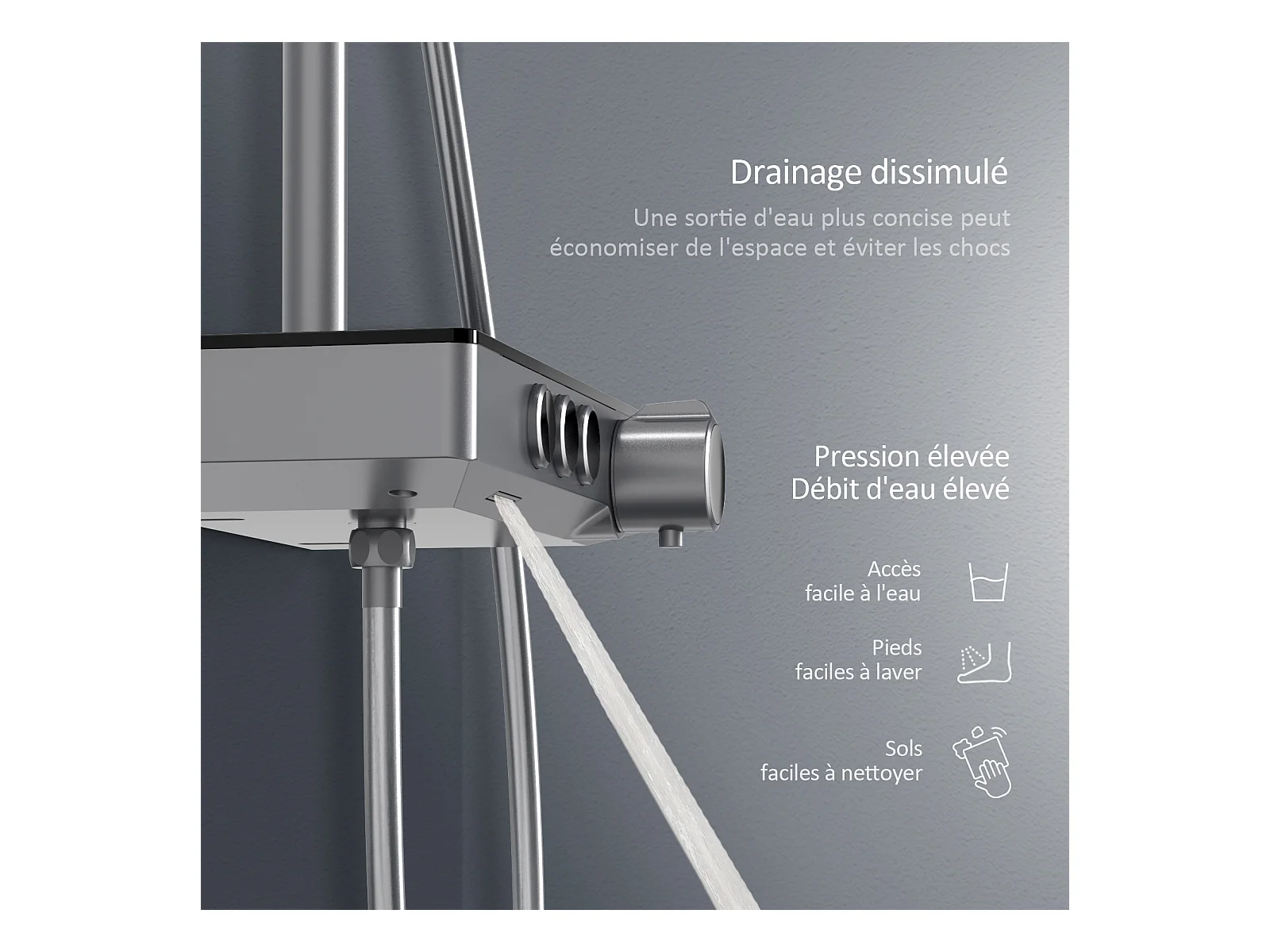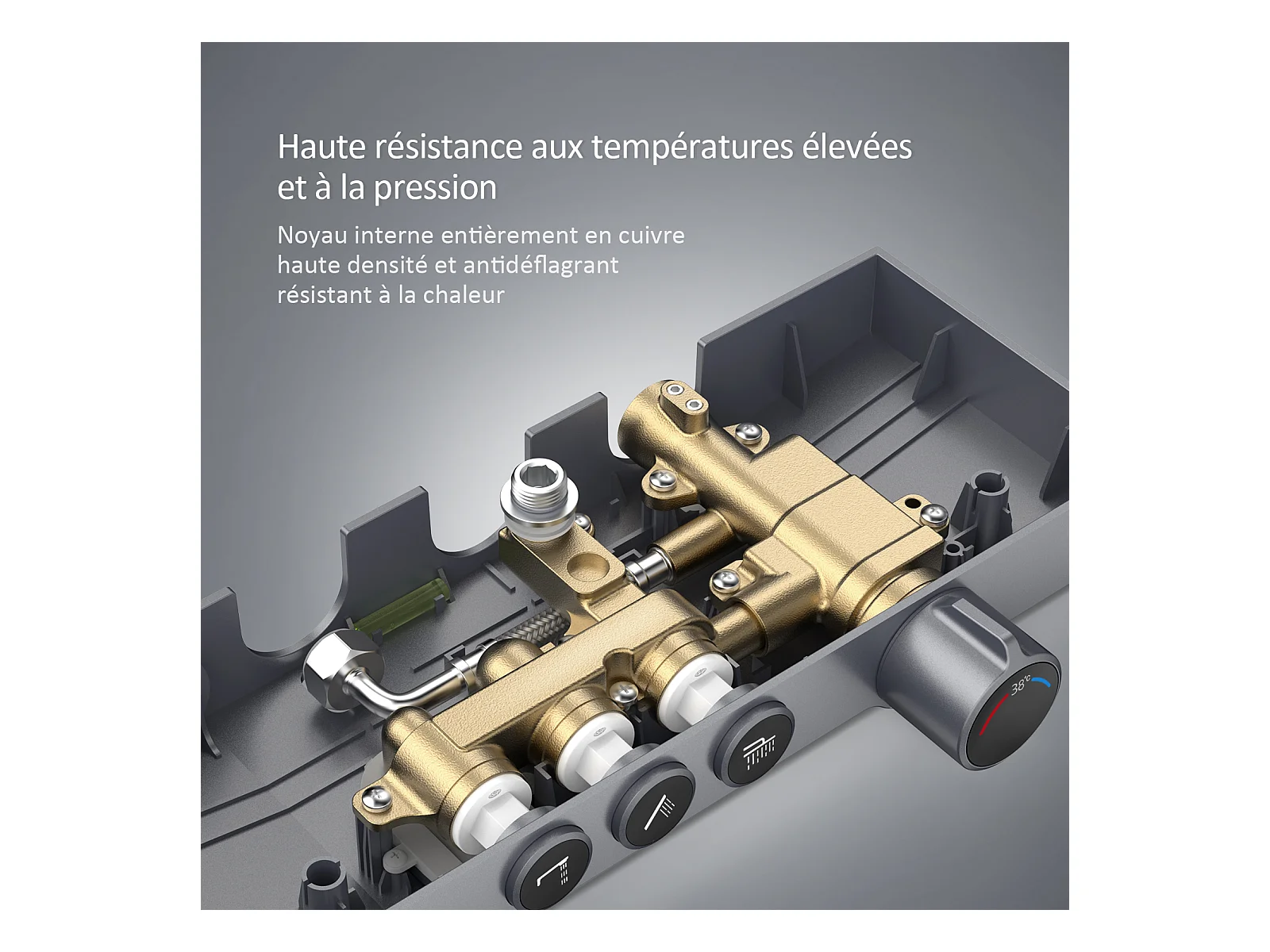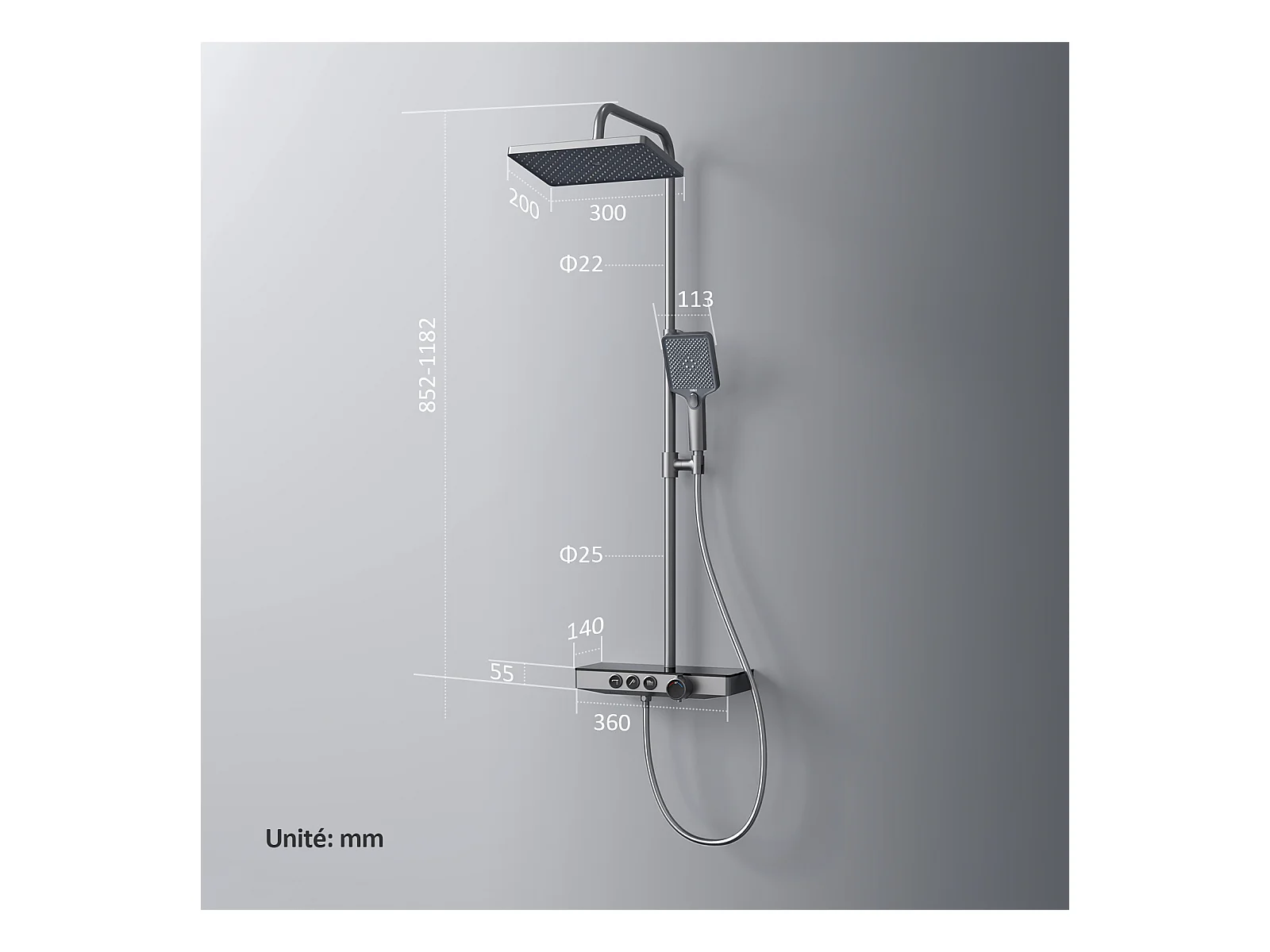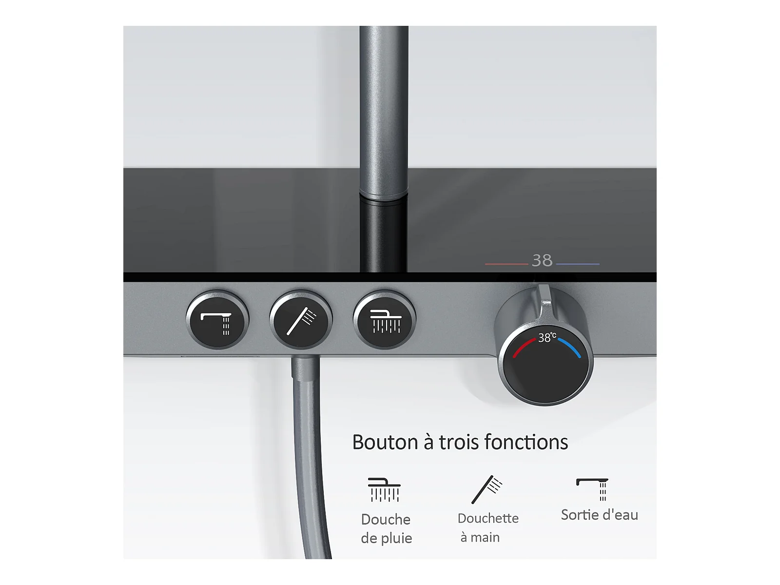 EMKE Thermostat-Duschsäule, 36 x 14 cm Glasregale, 3 Strahlarten, Regenbrause, KTW-Zertifizierung, Metallgrau