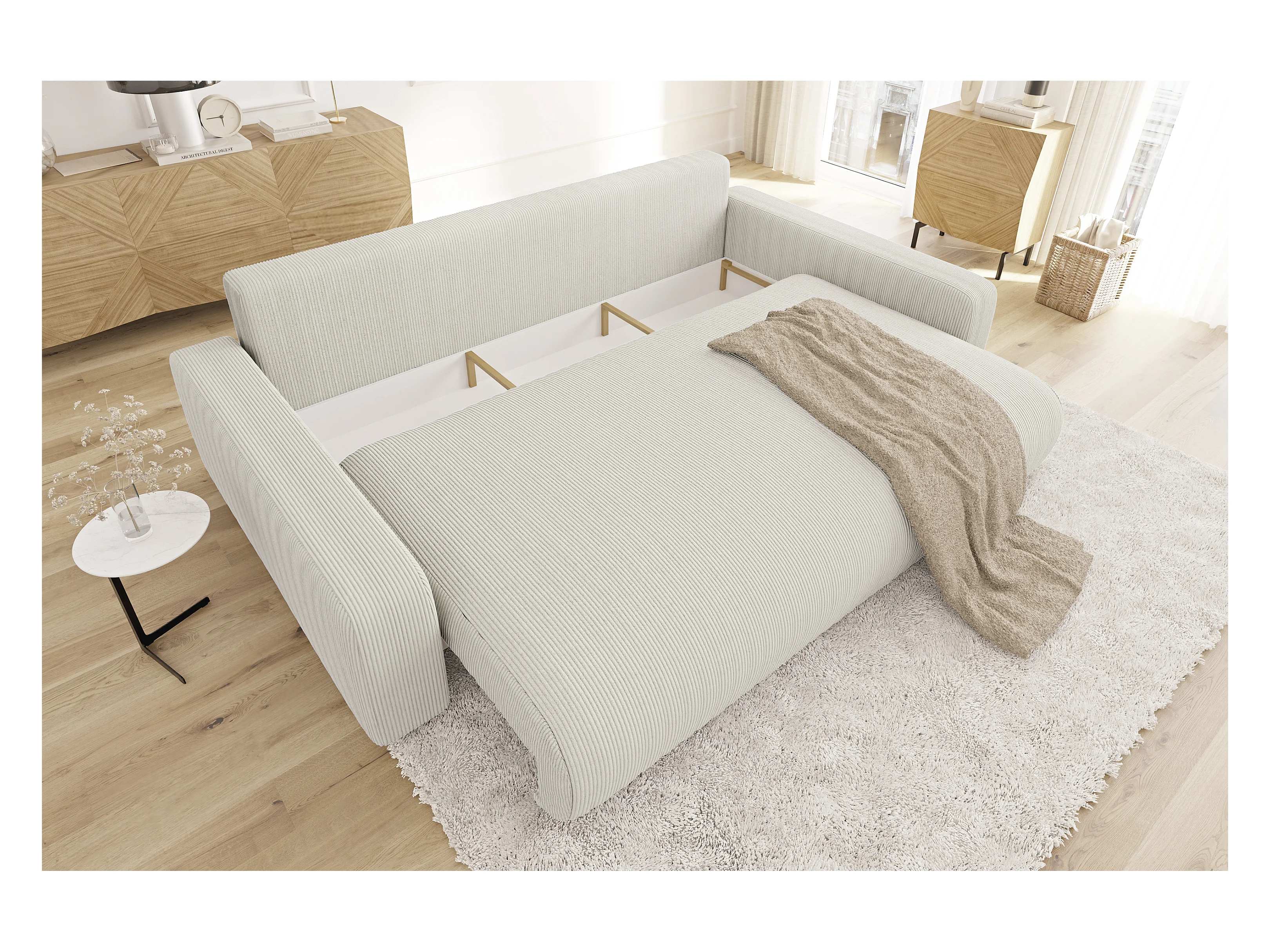 Emma - Sofa mit Schlaffunktion und Bettkasten in Beige Cord-Stoff schöner Sitzkomfort