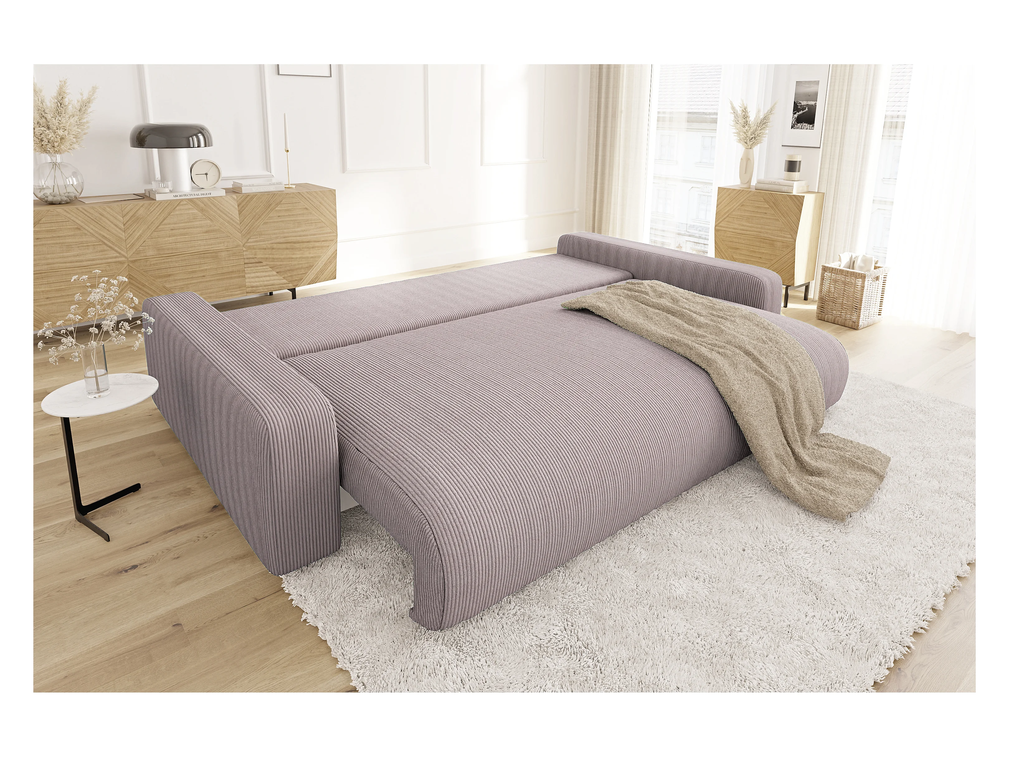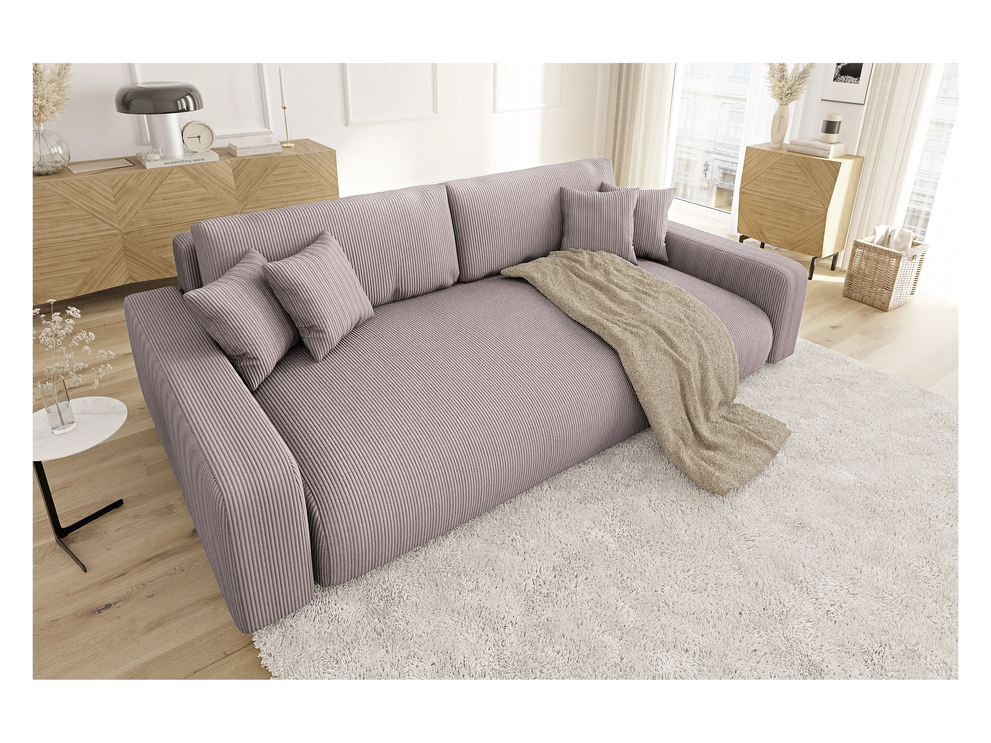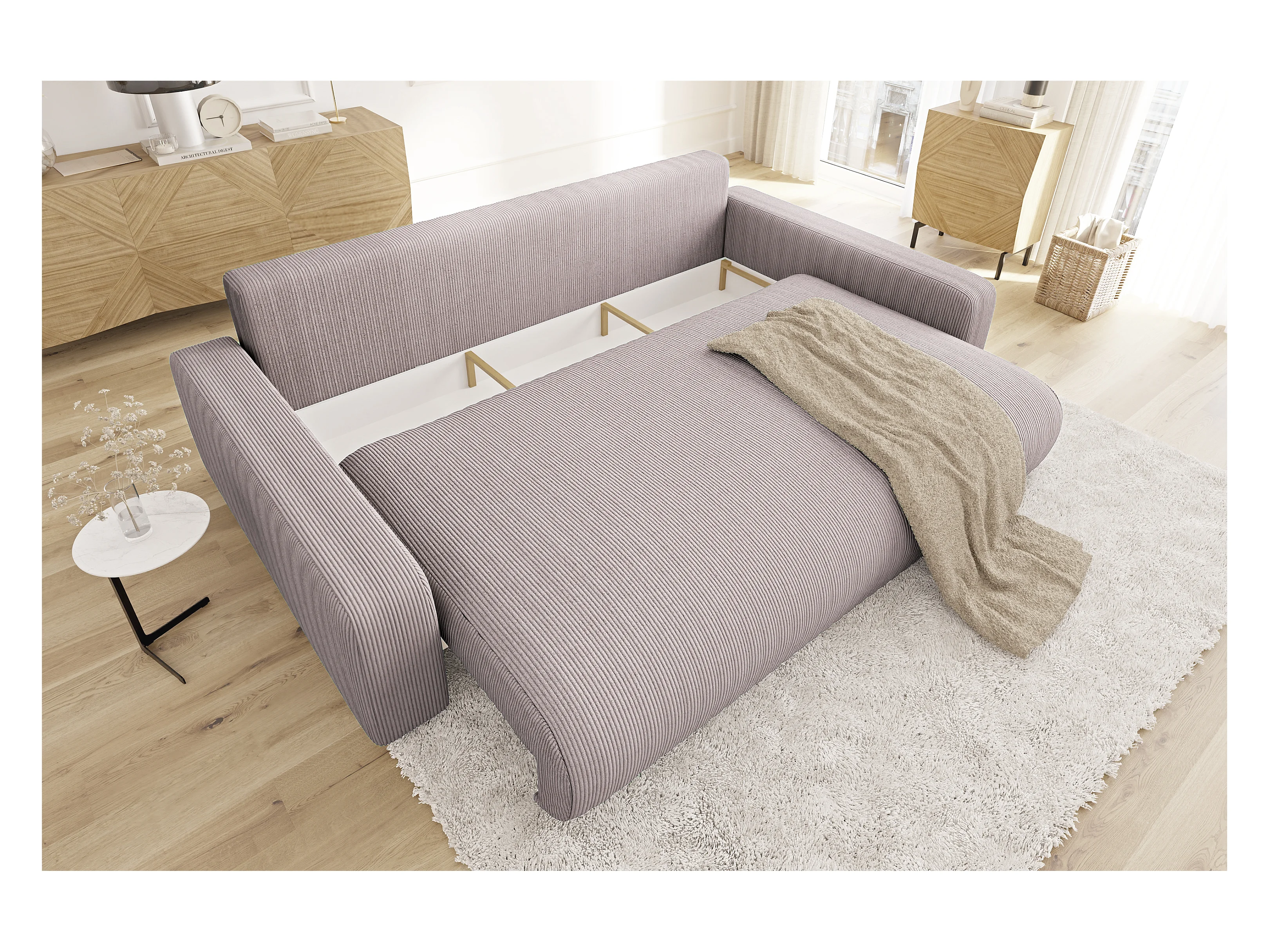 Emma - Sofa mit Schlaffunktion und Bettkasten in Puderrosa Cord-Stoff schöner Sitzkomfort
