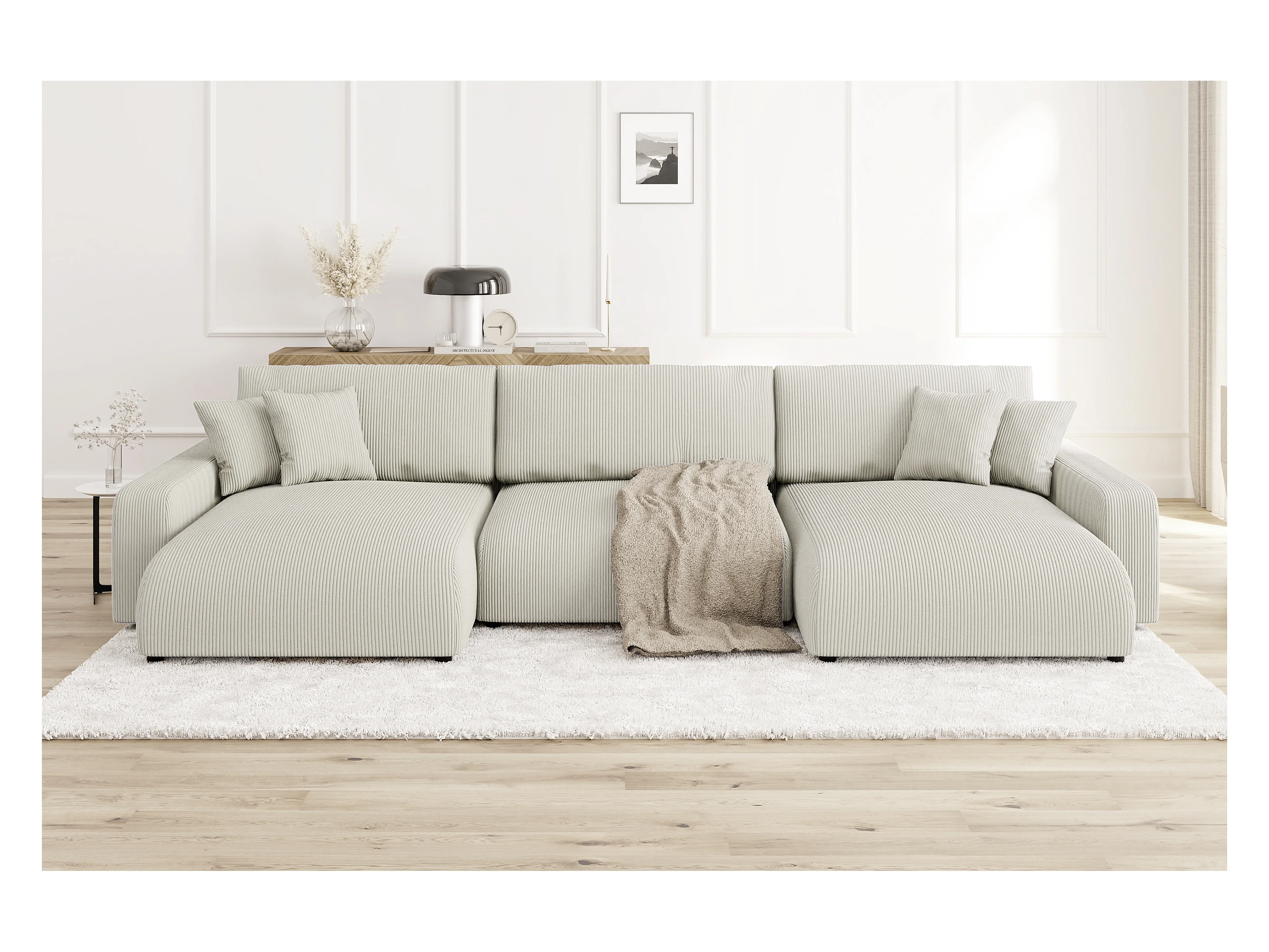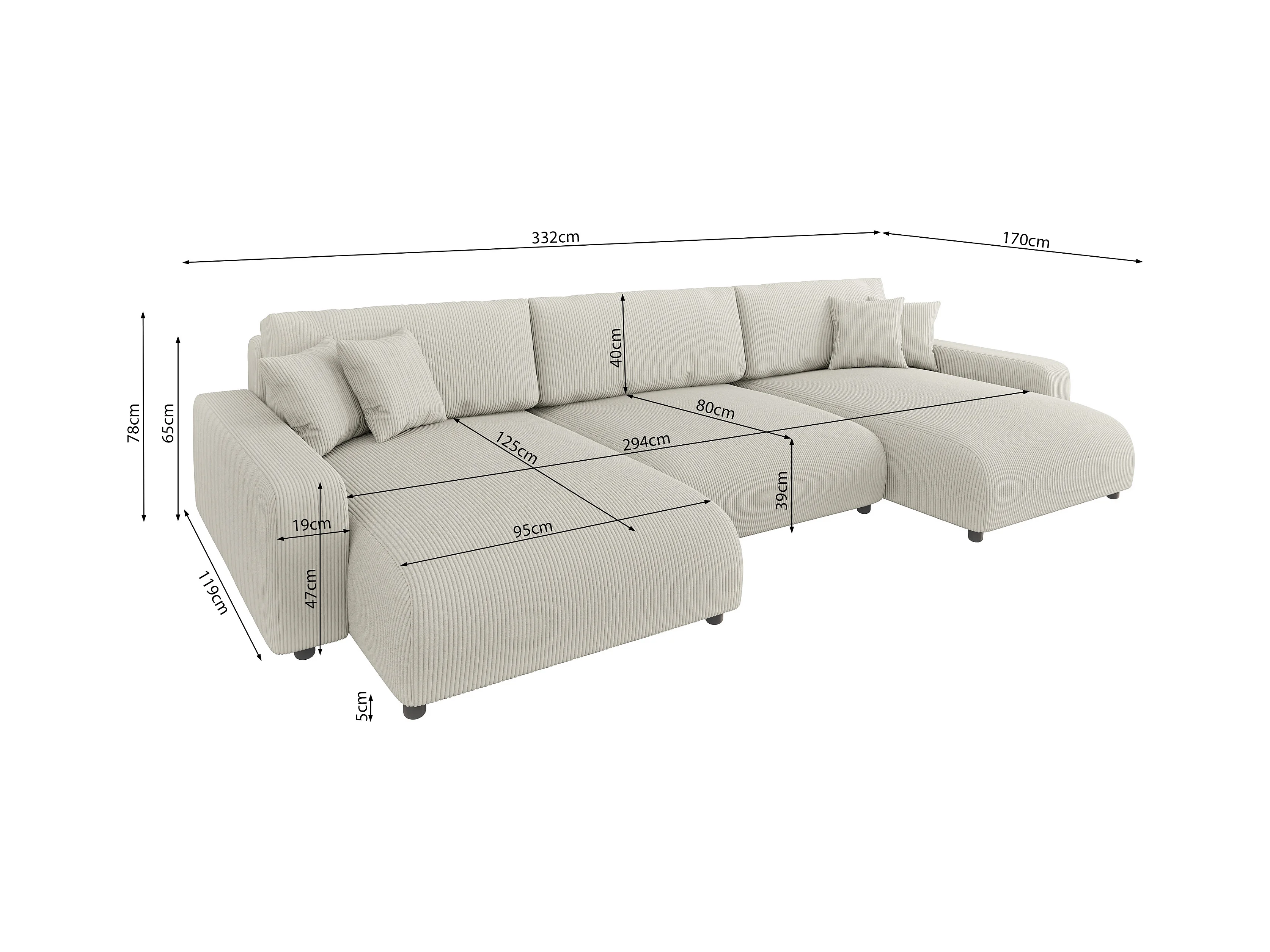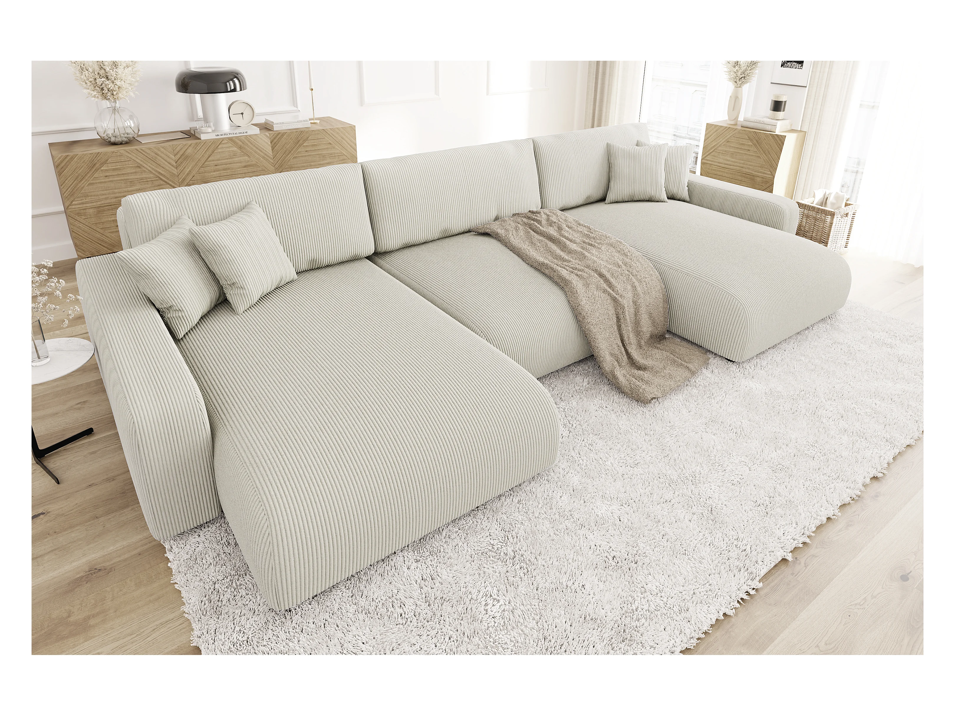 Emma - Wohnlandschaft mit Schlaffunktion und Bettkasten in Beige Cord-Stoff schöner Sitzkomfort