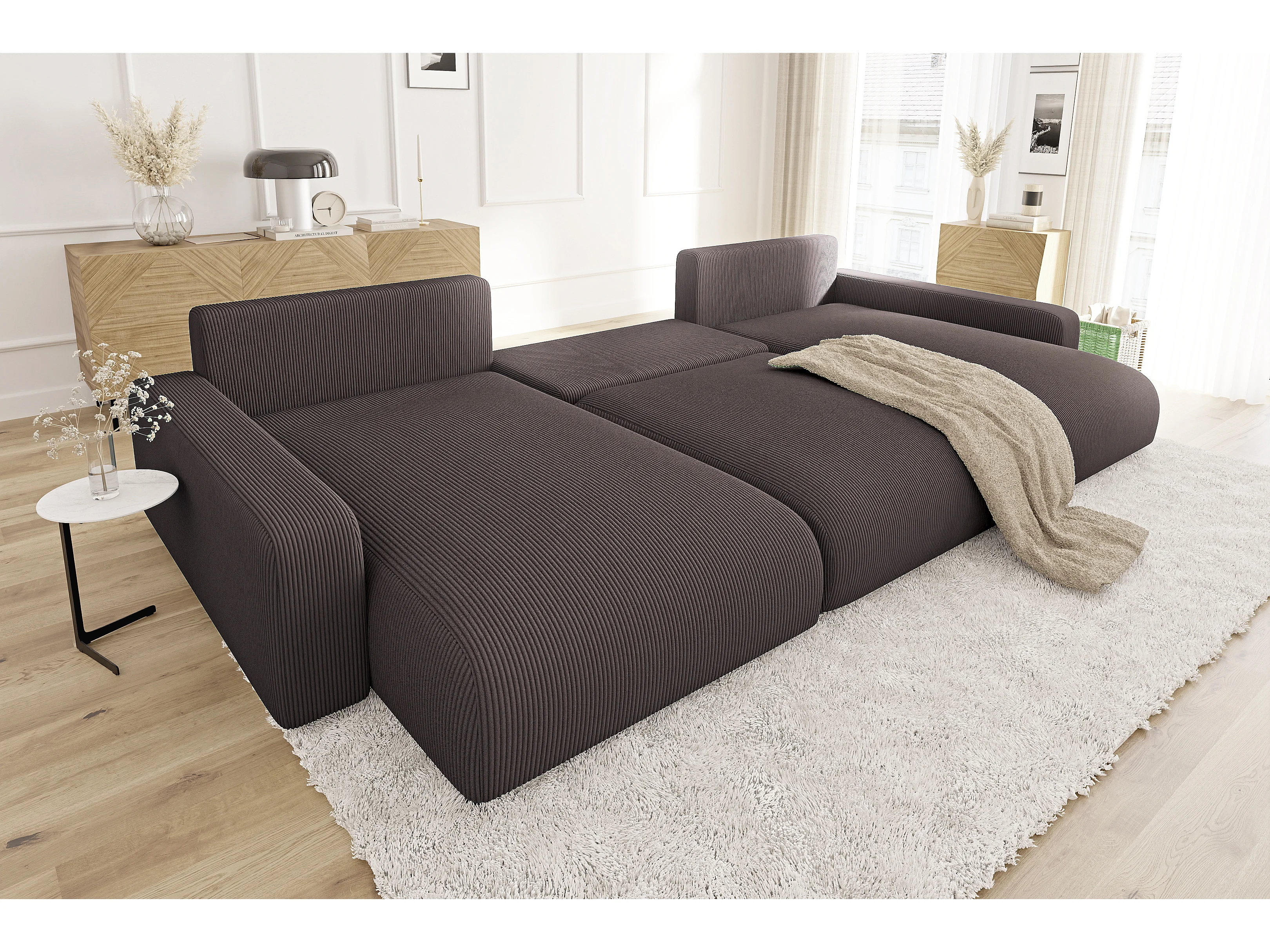 Emma - Wohnlandschaft mit Schlaffunktion und Bettkasten in Dunkelbraun Cord-Stoff schöner Sitzkomfort