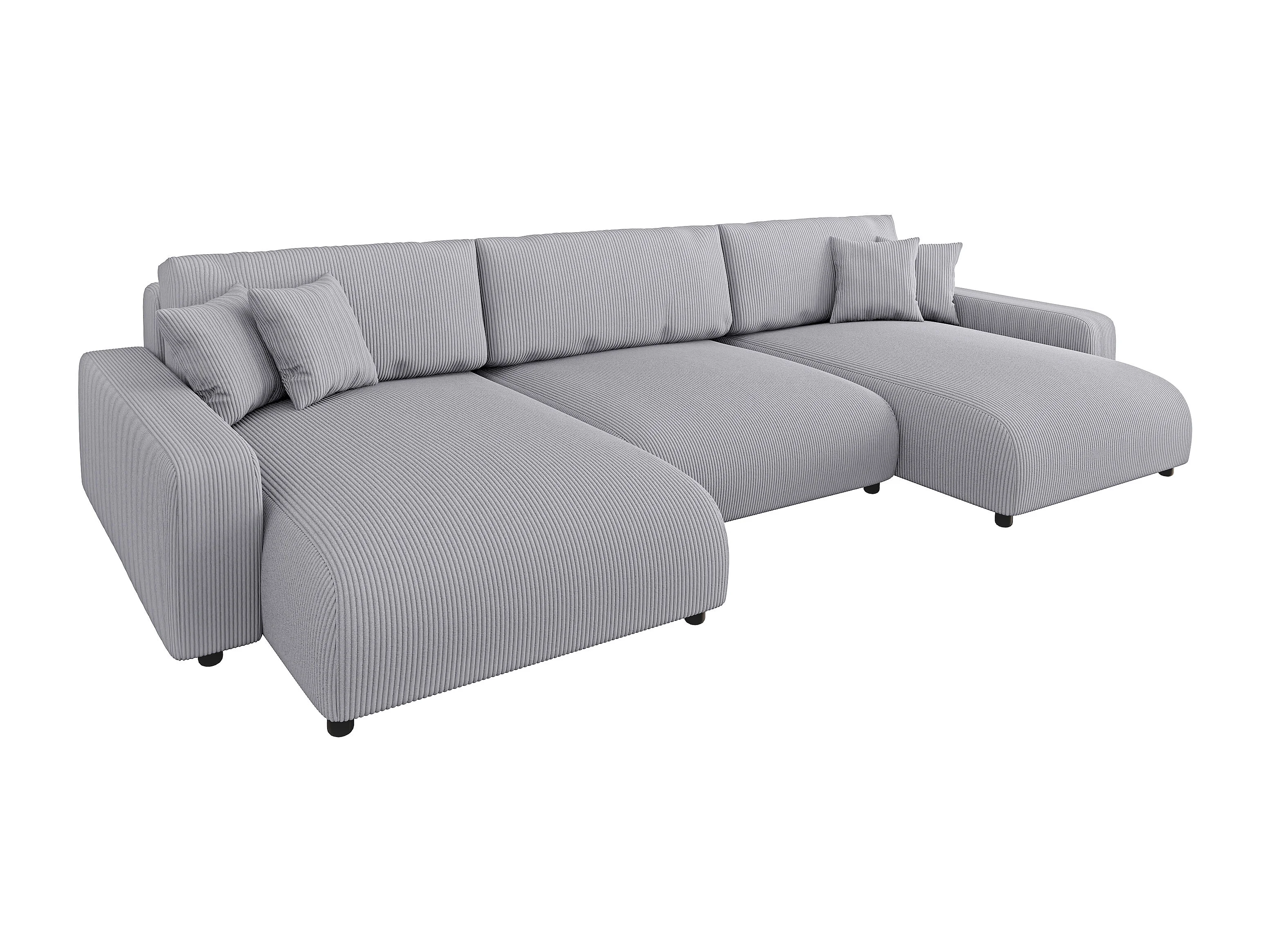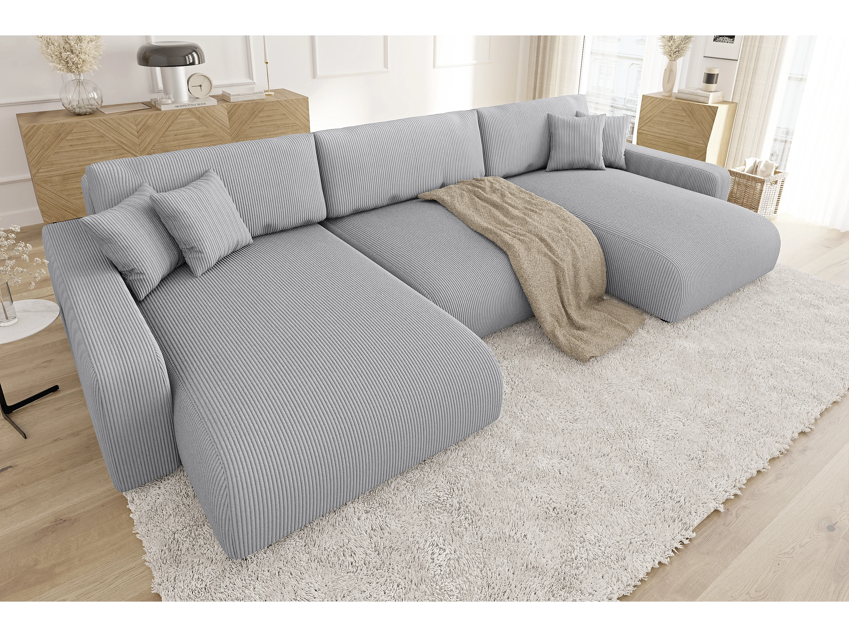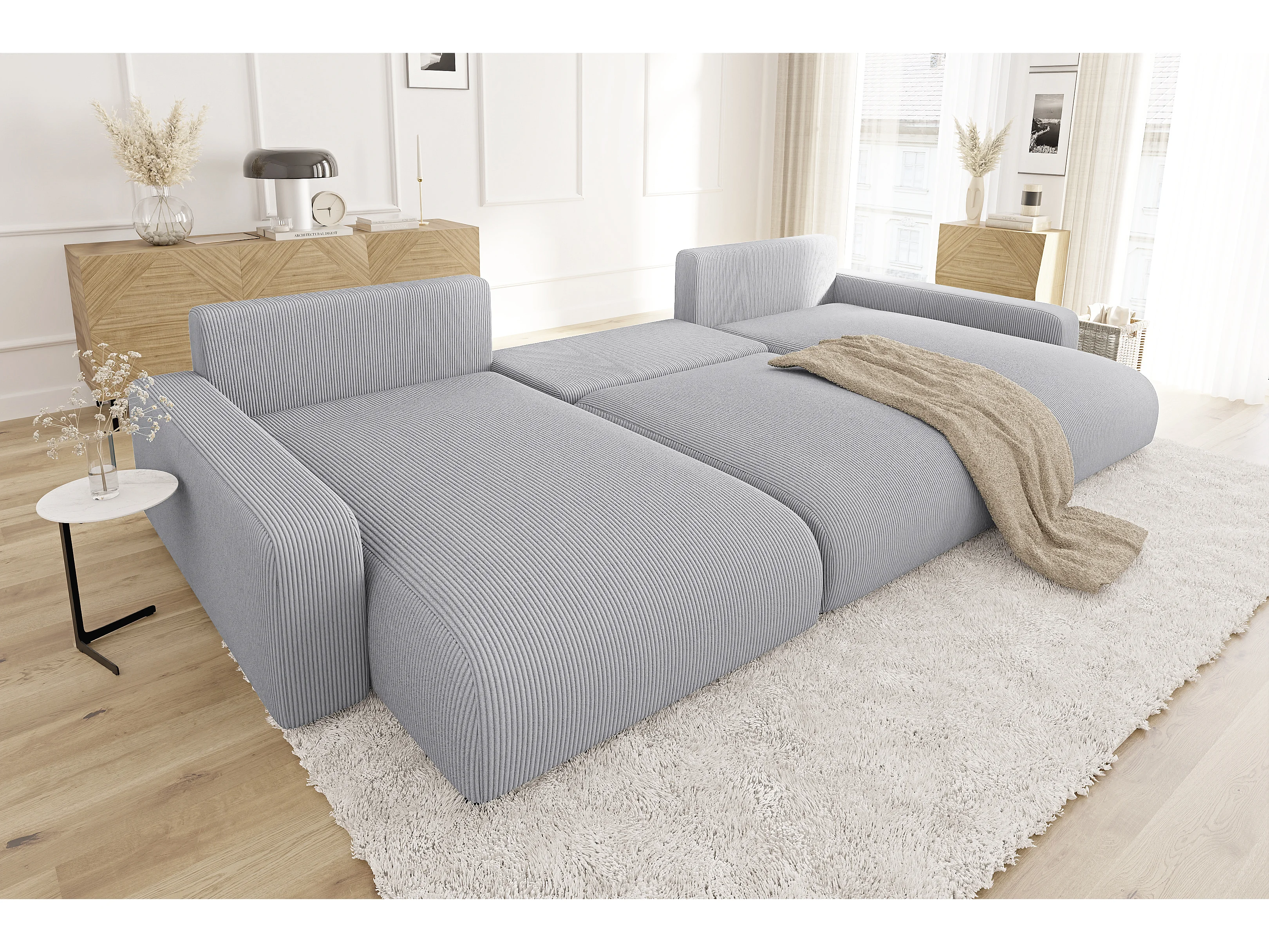 Emma - Wohnlandschaft mit Schlaffunktion und Bettkasten in Hellgrau Cord-Stoff schöner Sitzkomfort