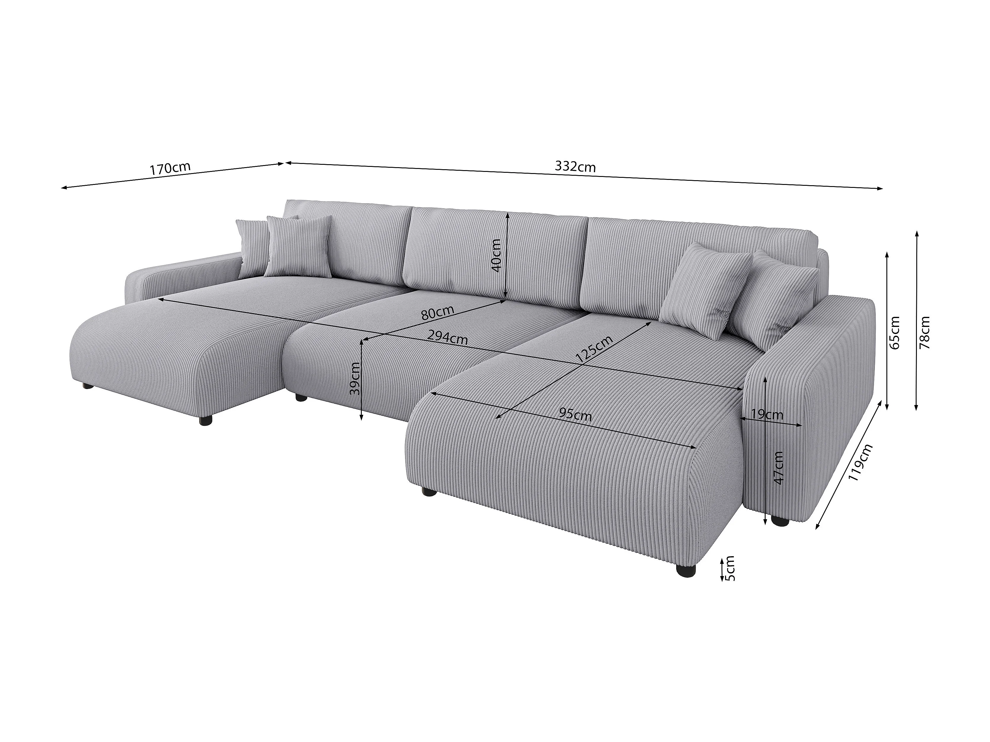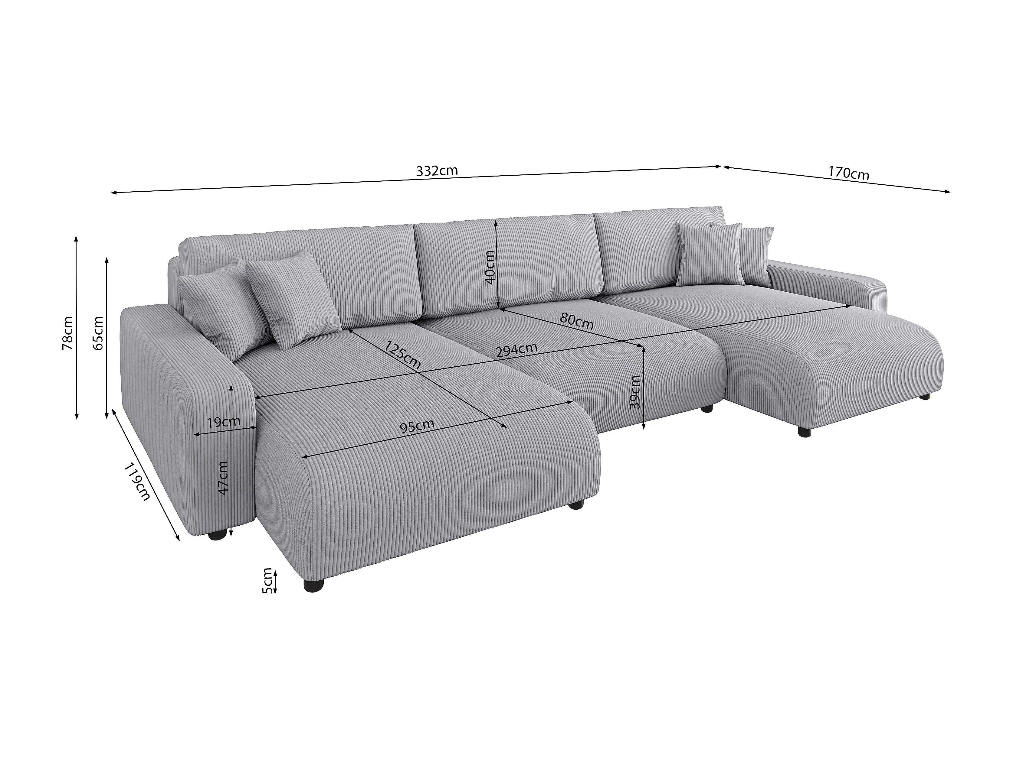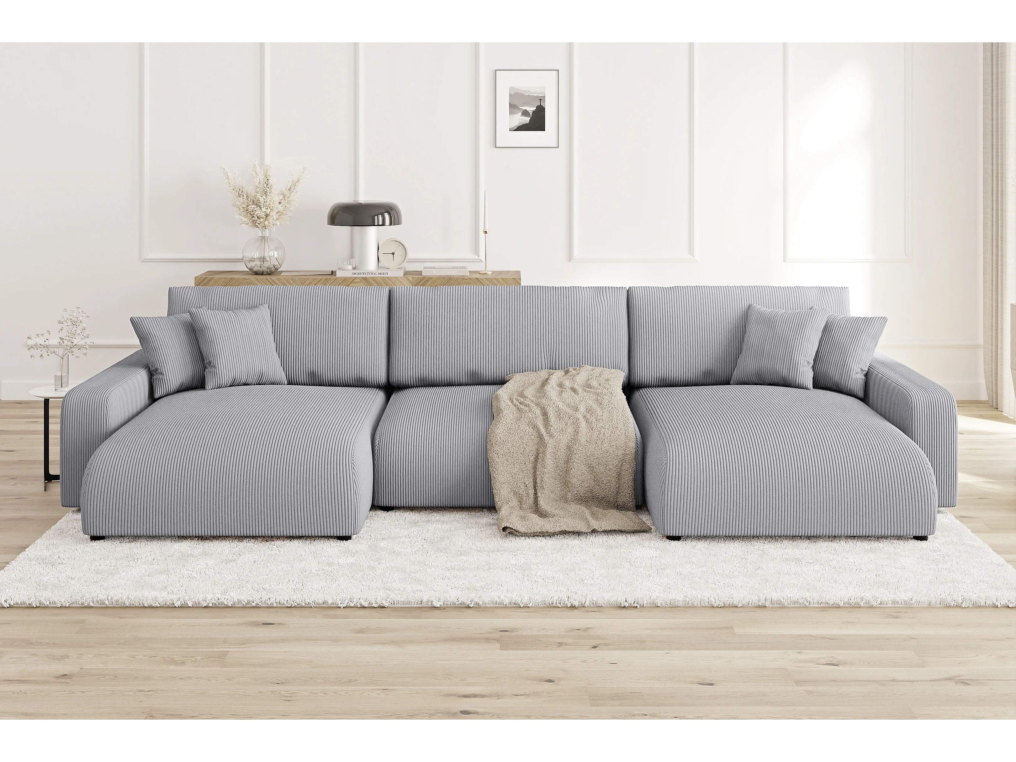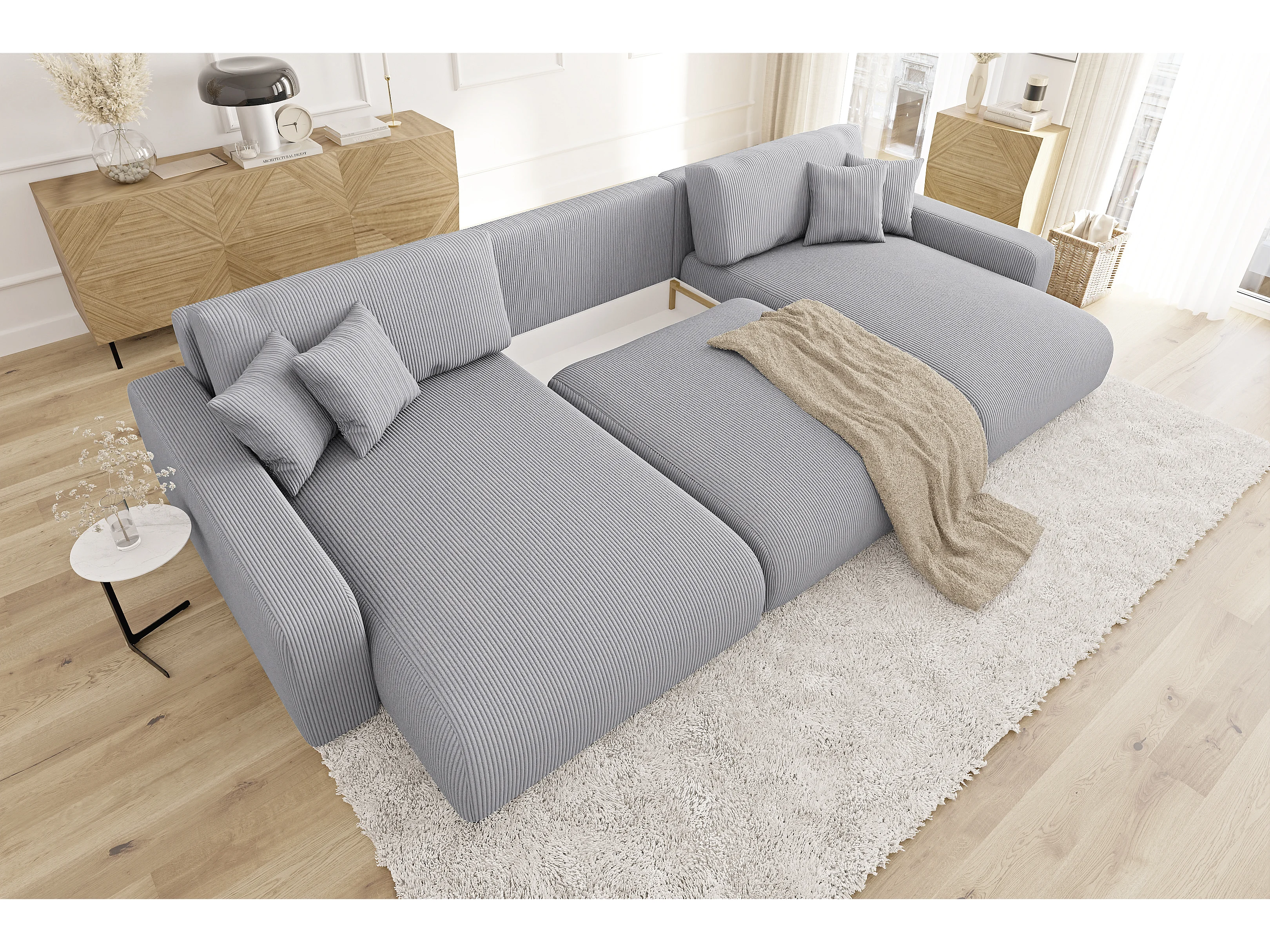 Emma - Wohnlandschaft mit Schlaffunktion und Bettkasten in Hellgrau Cord-Stoff schöner Sitzkomfort