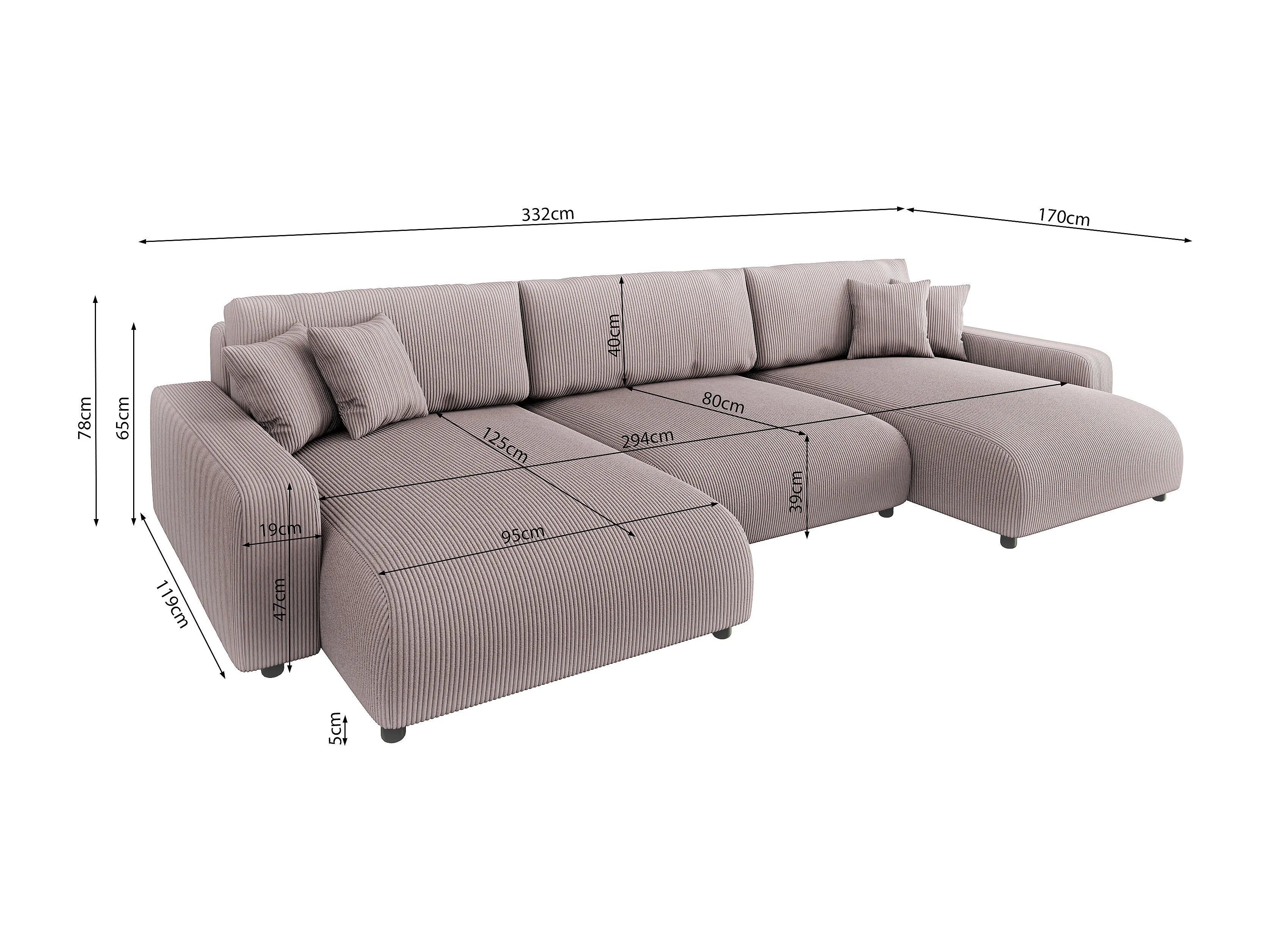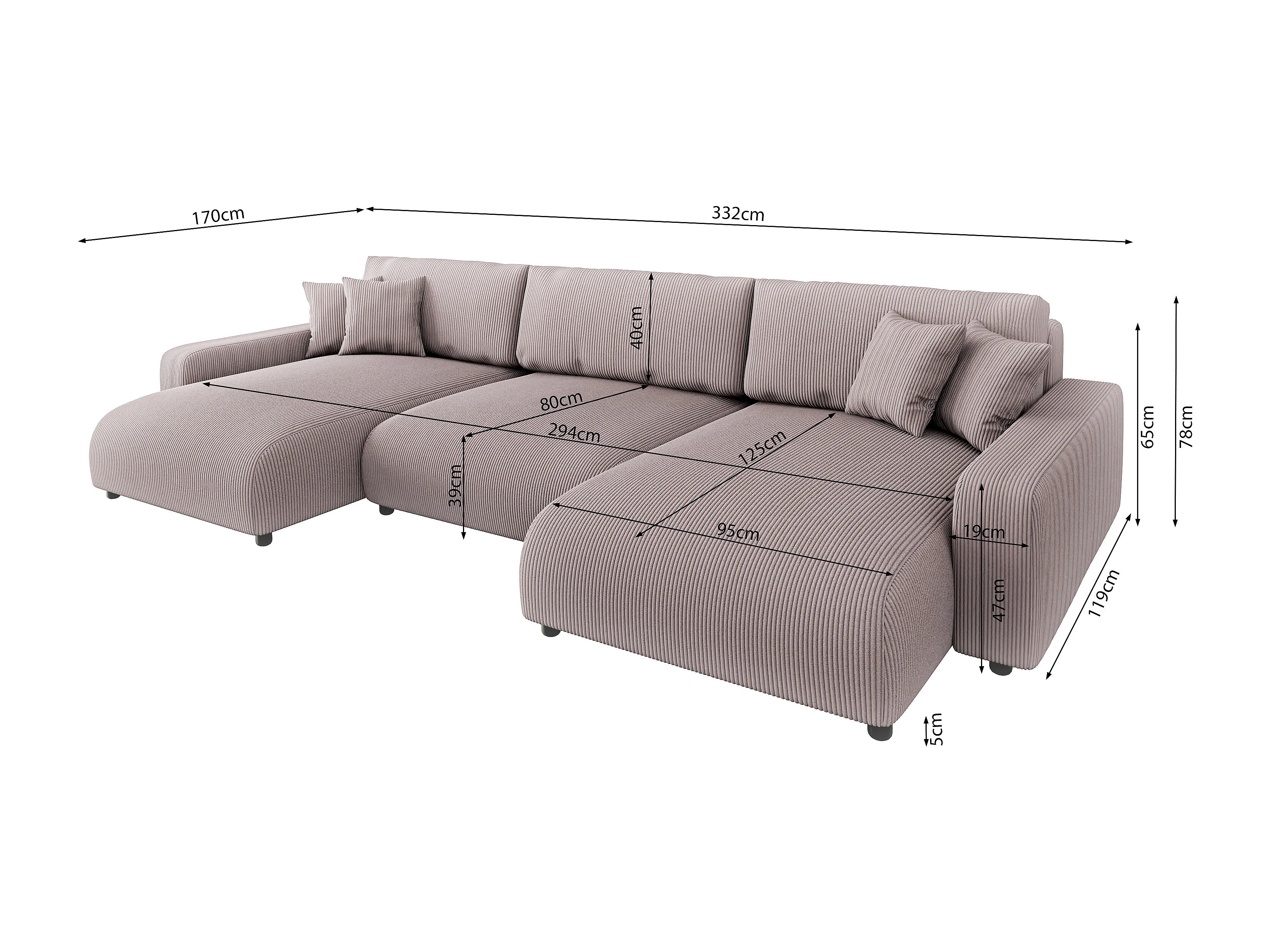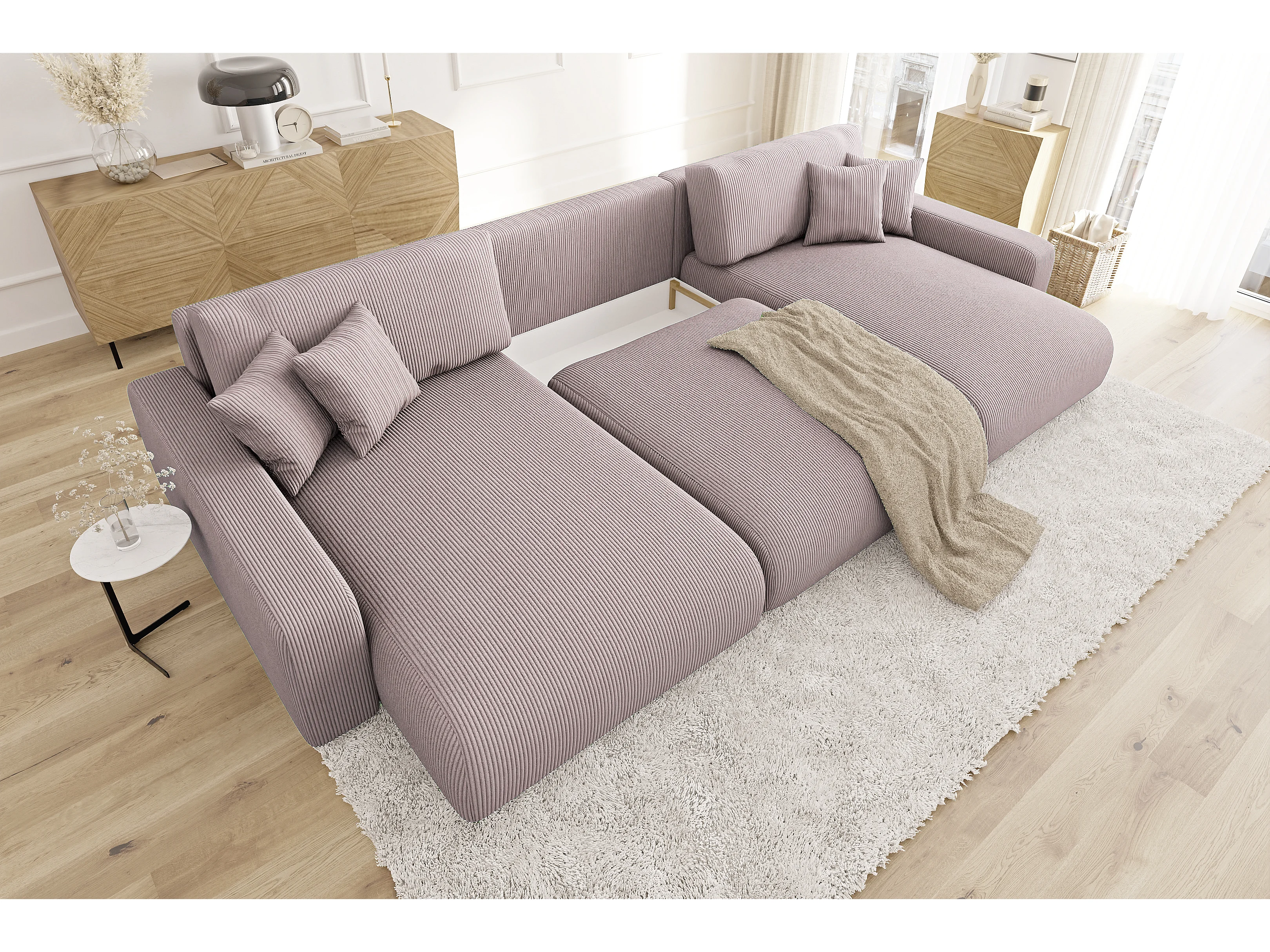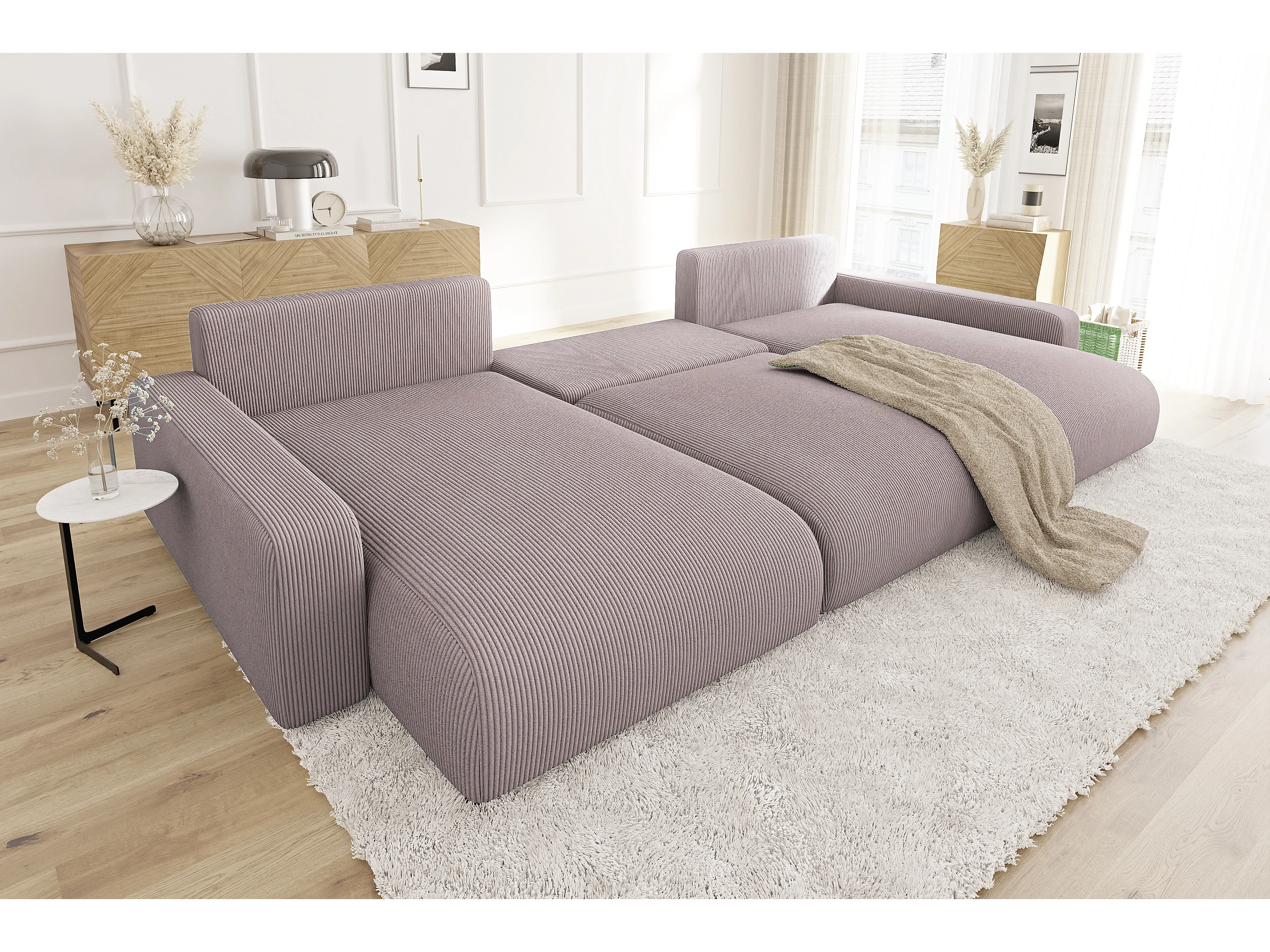 Emma - Wohnlandschaft mit Schlaffunktion und Bettkasten in Puderrosa Cord-Stoff schöner Sitzkomfort