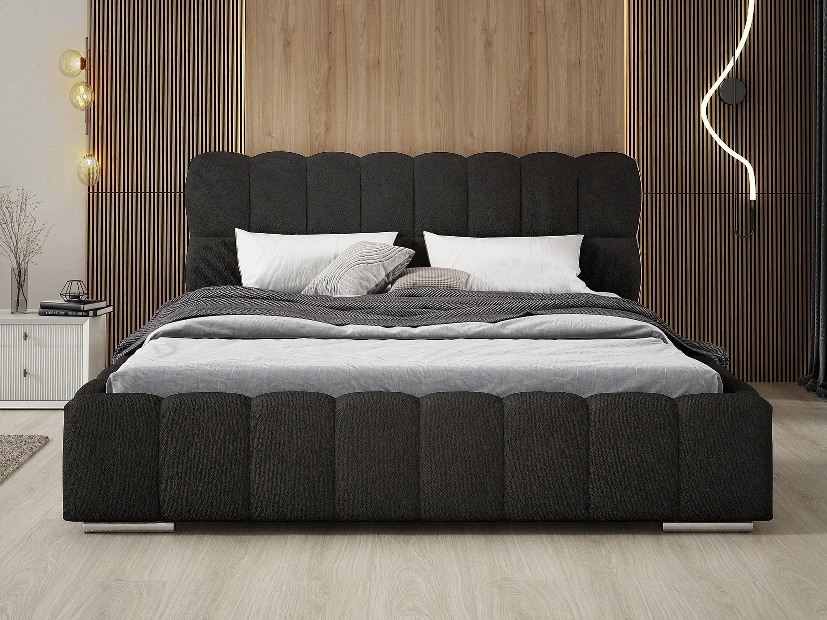 Emporius Avilla Polsterbett 140x200 - Doppelbett mit Bettkasten, Lattenrost, Kopfteil - Bett Bouclé Schwarz (Anthology 19)