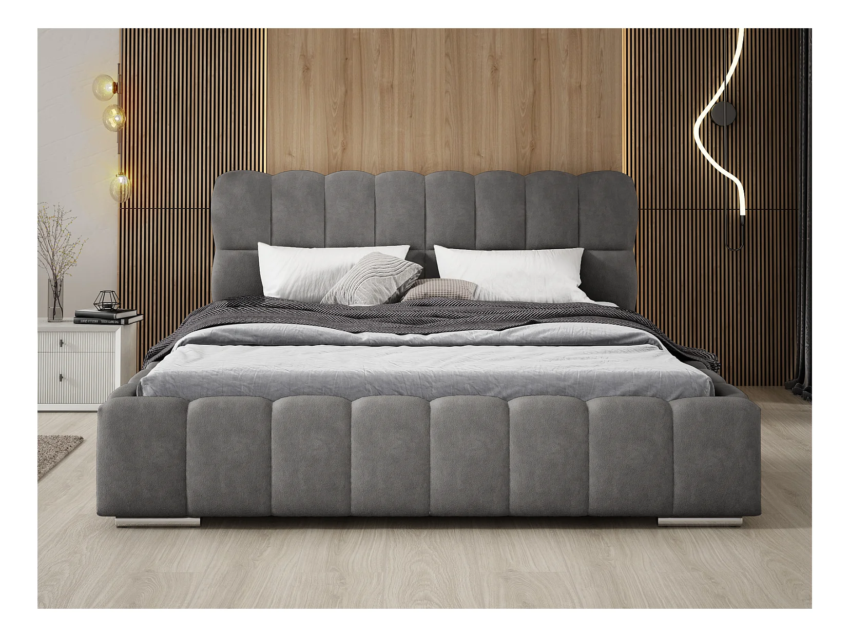 Emporius Avilla Polsterbett 200x200 - Doppelbett mit Bettkasten, Lattenrost, Kopfteil - Samtstoff, Velvet, Bett Grau (Komodo 21)