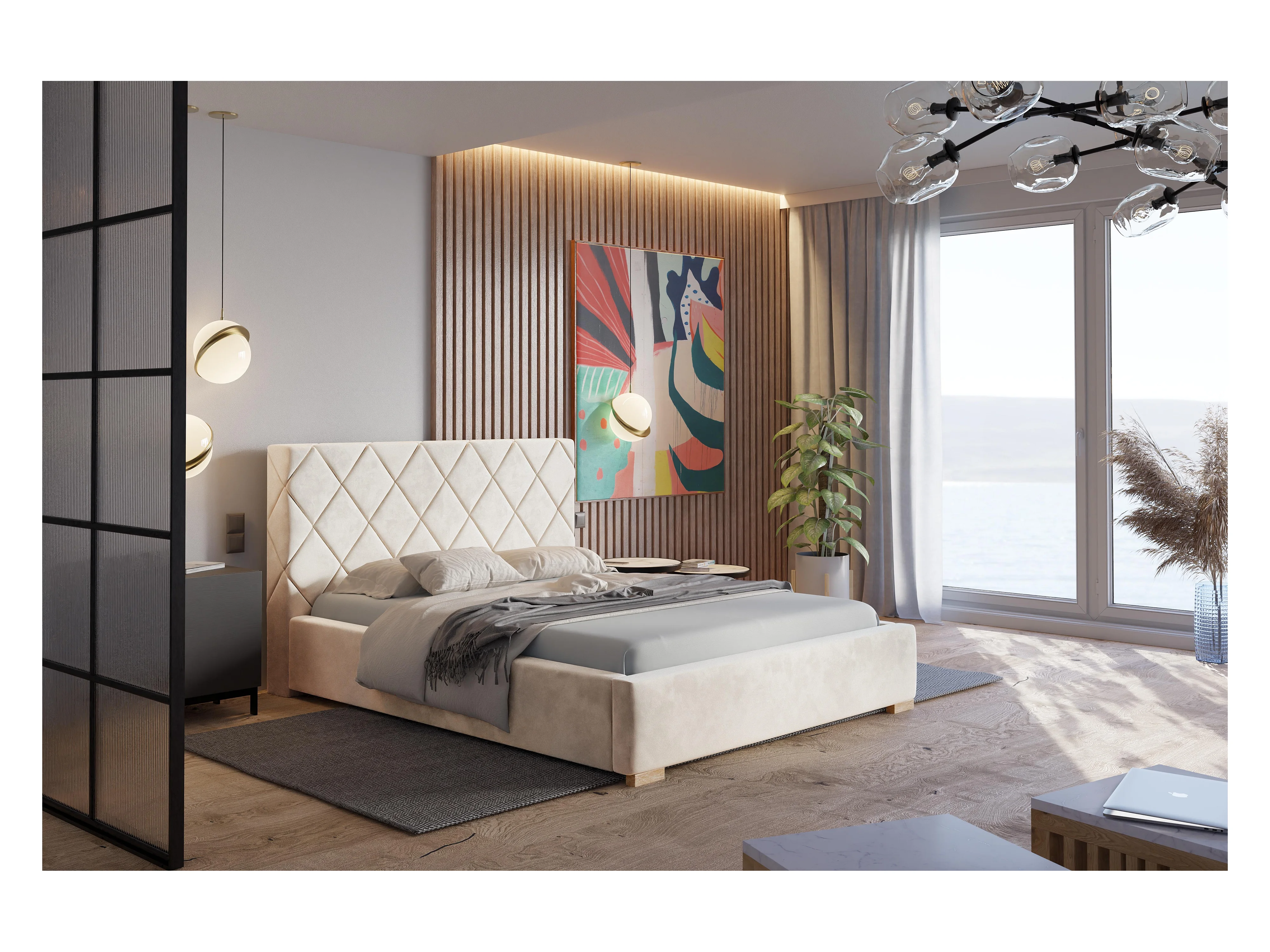 Emporius Bett 180x200 Aron, Polsterbett mit Bettkasten - Schlafzimmer, Doppelbett mit Lattenrost - Beige (Amor Velvet 4304)