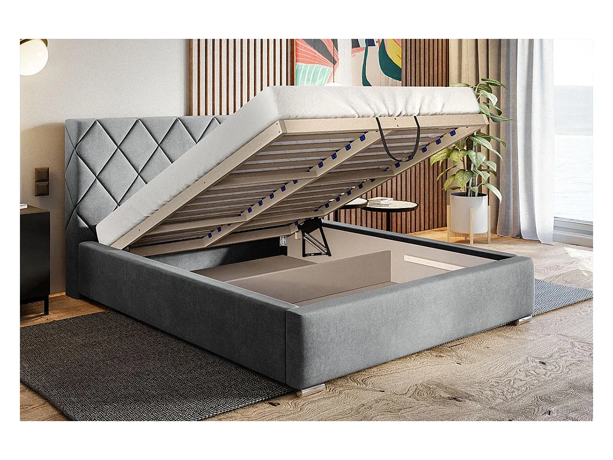 Emporius Bett 180x200 Aron, Polsterbett mit Bettkasten - Schlafzimmer, Doppelbett mit Lattenrost - Hellgrau (Jasmine 90)