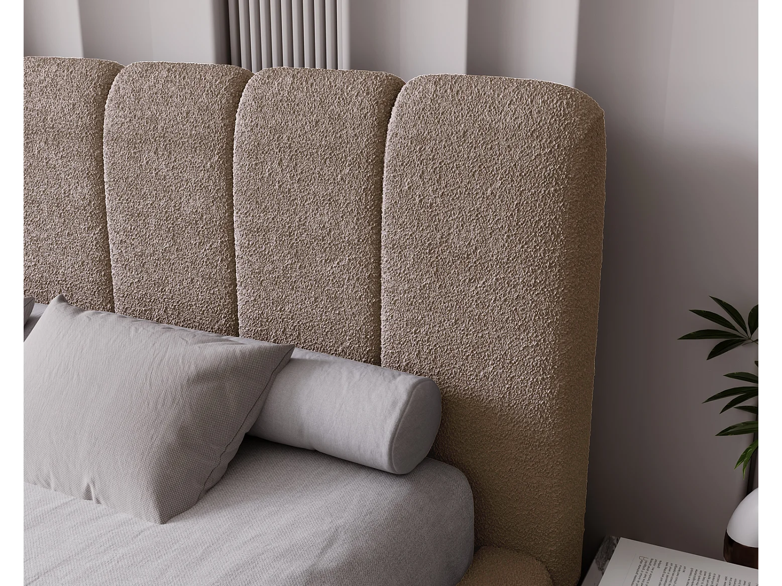 Emporius Doppelbett 140x200 Milan - Lattenrost, Bettkasten, Kopfteil - Polsterbett Bouclé (Braun - Anthology 5)