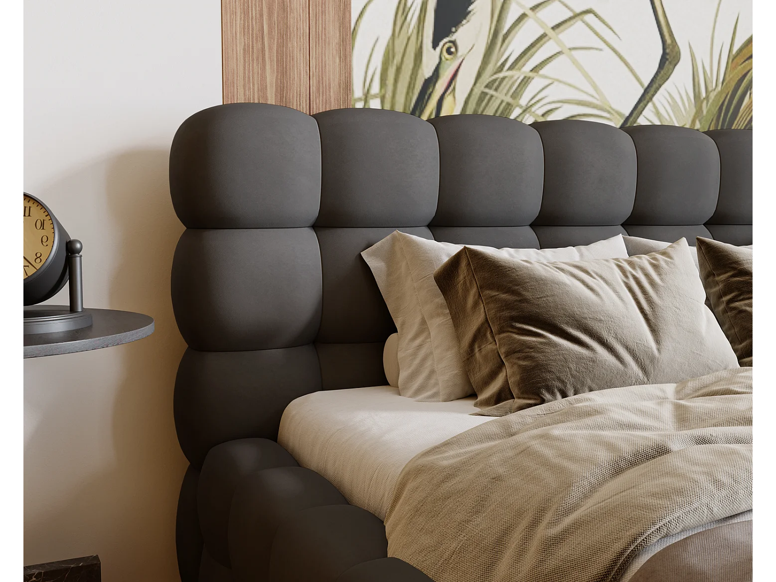 Emporius Doppelbett 140x200 Parlas Bis, Schaumstoff - Polsterbett mit Lattenrost - Velvet stoff Dunkelgrau (Amor Velvet 4321)