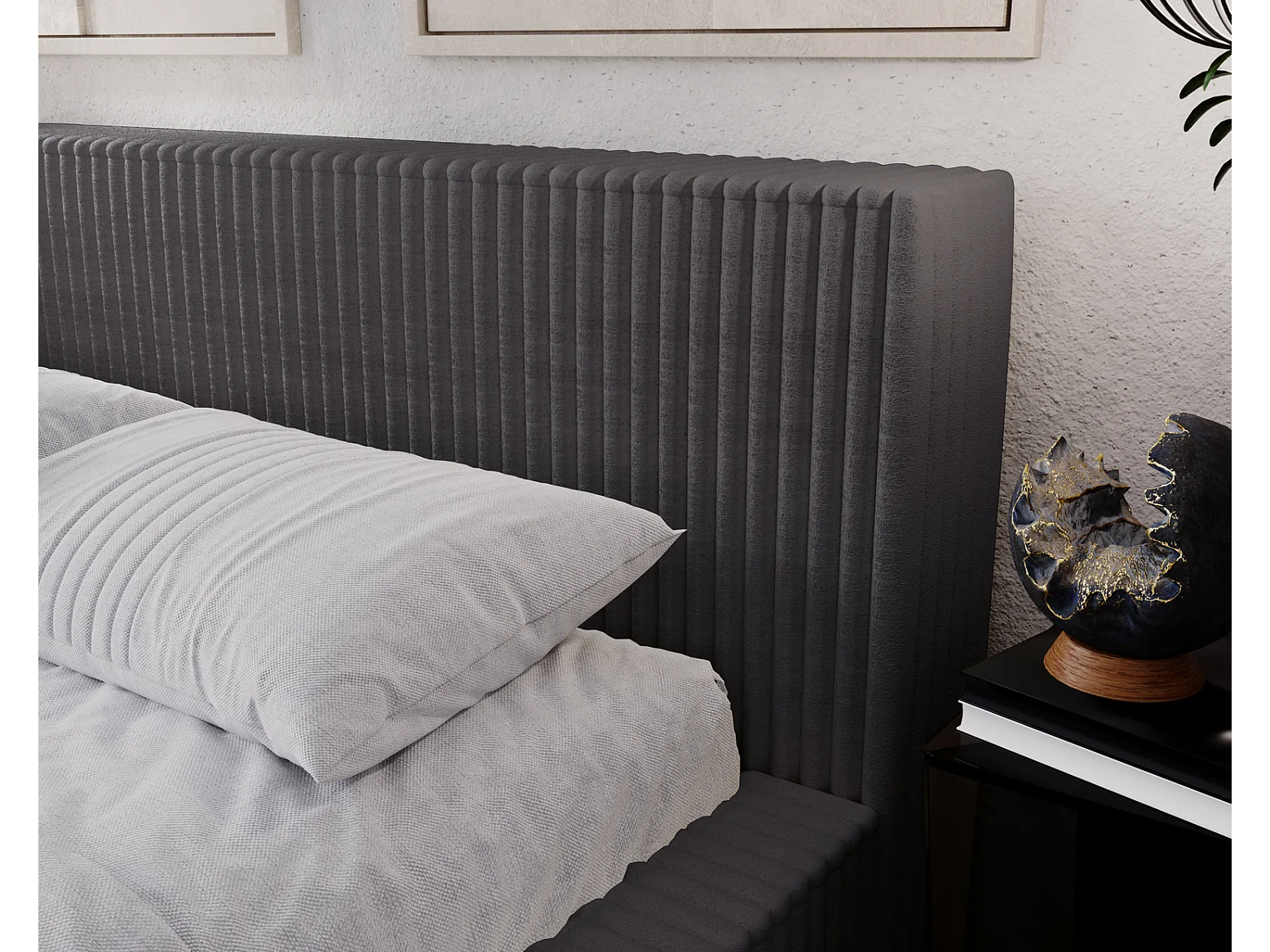Emporius Doppelbett 160 x 200 Buffy - Polsterbett mit Dicker Schaum - Schlafzimmer, Bett 160x200 Dunkelgrau (Vito 18)