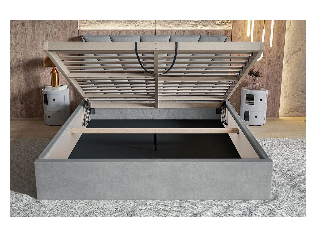 Emporius Doppelbett 180 x 200 Aris - Polsterbett mit Bettkasten, Lattenrost - Velvet Blau (Kronos 09)
