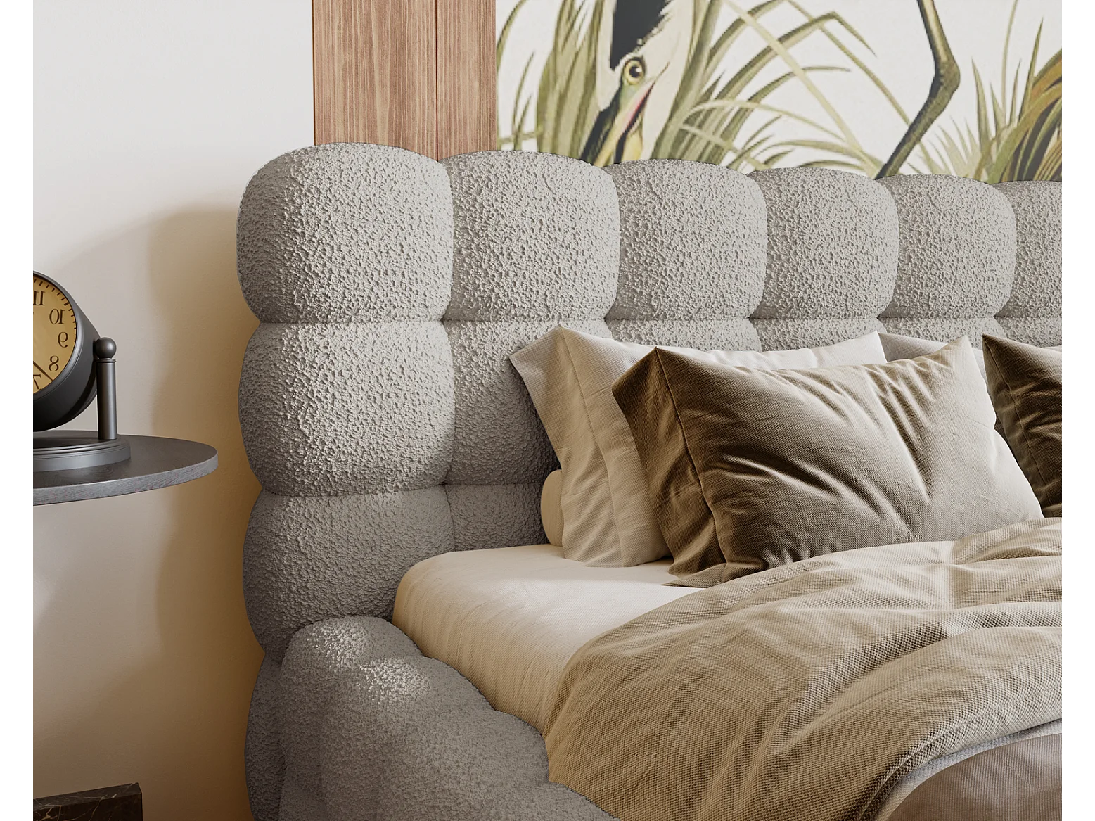 Emporius Doppelbett 180x200 Parlas Bis, Schaumstoff - Polsterbett mit Lattenrost - Bouclé stoff Hellgrau (Anthology 15)