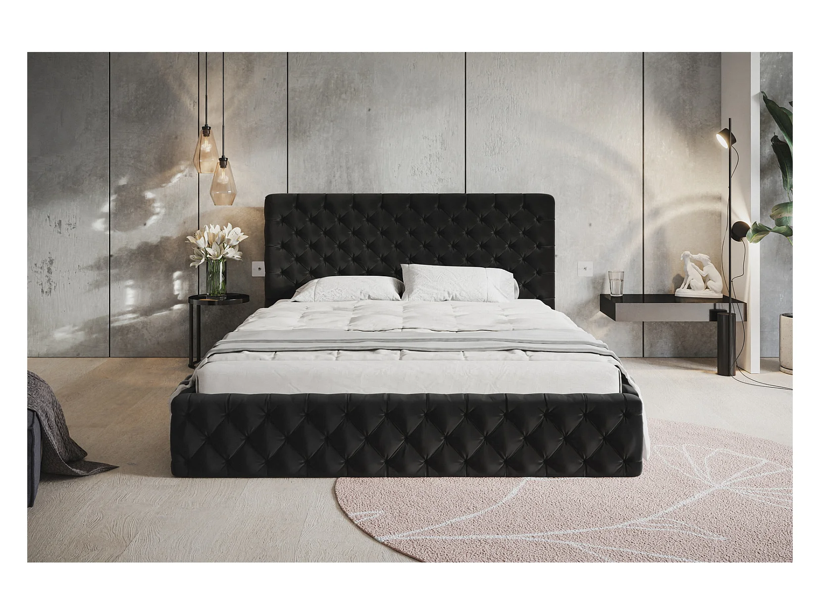 Emporius Doppelbett mit Bettkasten Furis - Polsterbett 140x200 - Lattenrost, Samtstoff (Schwarz - Amor Velvet 4322)