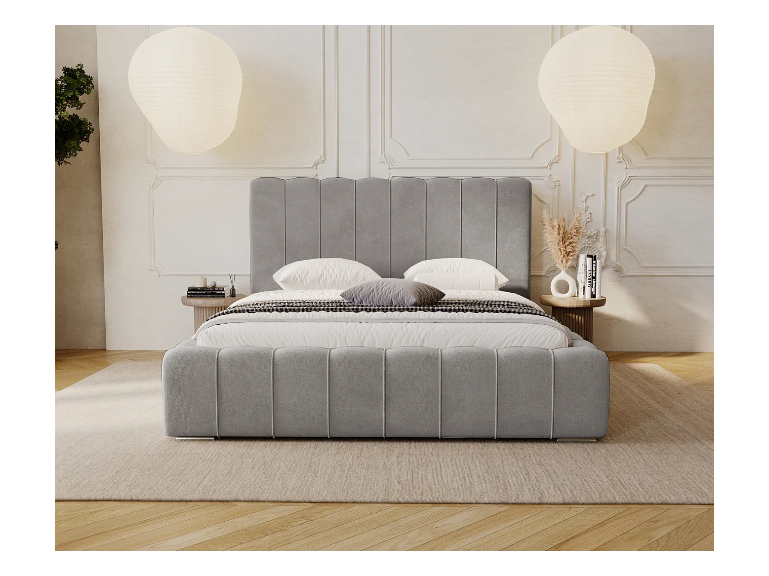 Emporius Lisbon Polsterbett mit Bettkasten, Doppelbett 140x200 Samtstoff, velvet, Bett Hellgrau (Komodo 20)