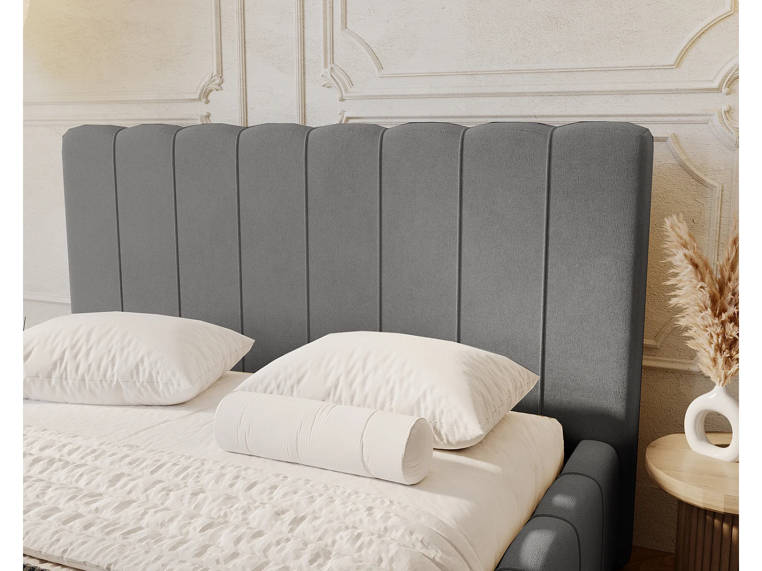 Emporius Lisbon Polsterbett mit Bettkasten, Doppelbett 160x200 Samtstoff, velvet, Bett Grau (Komodo 21)