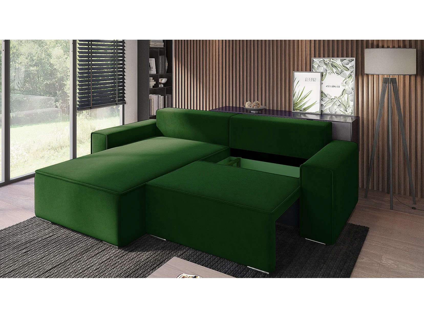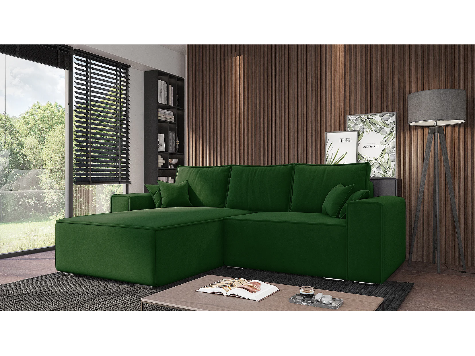 Emporius Lora Links Ecksofa mit Schlaffunktion, Sofa L-Form, Bettkasten, Samtstoff, Ecksofa 250 cm Grün (Amor Velvet 4311)