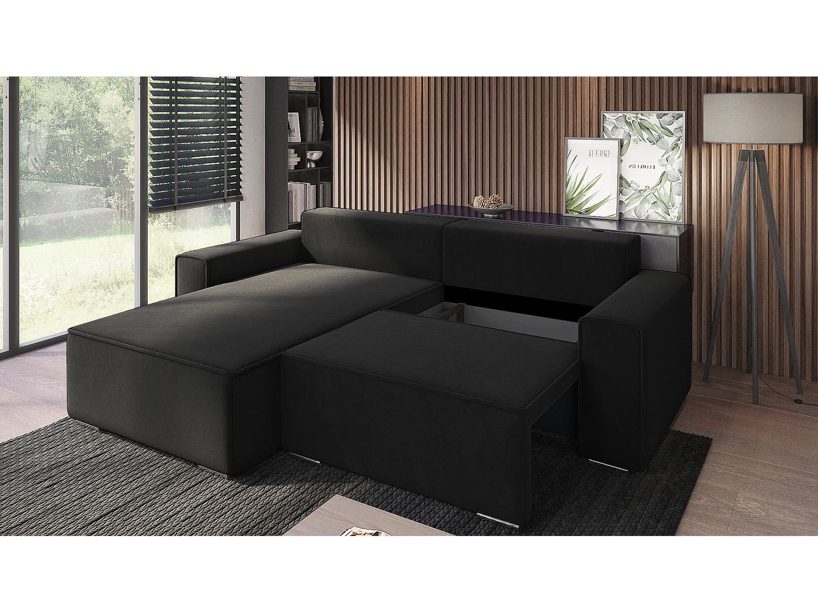 Emporius Lora Links Ecksofa mit Schlaffunktion, Sofa L-Form, Bettkasten, Samtstoff, Ecksofa 250 cm Schwarz (Amor Velvet 4322)