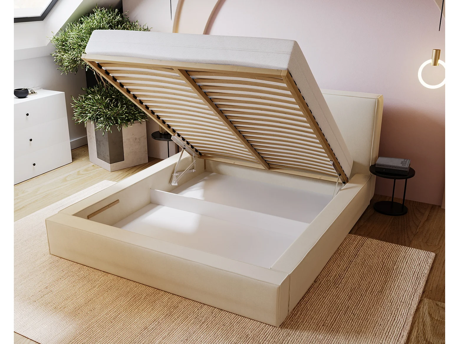 Emporius Morin Polsterbett 140x200 - Doppelbett 140x200 mit Bettkasten - Hellgrau (Amor Velvet 4318)