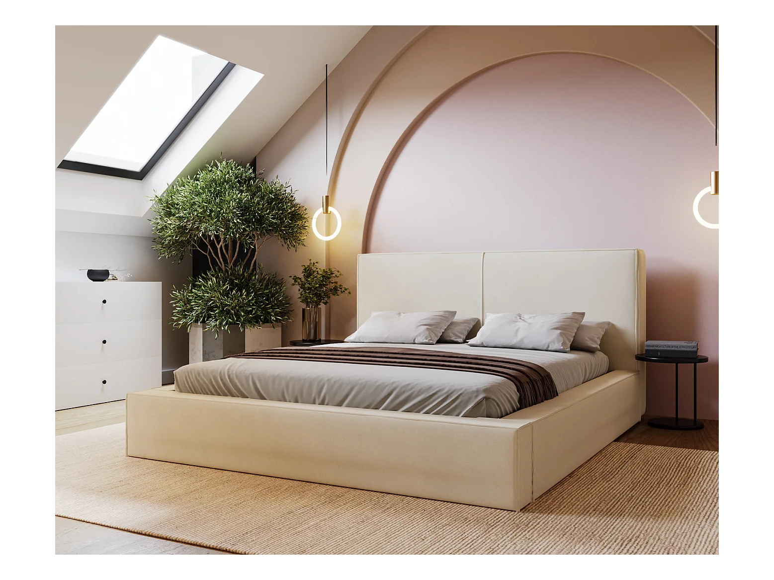Emporius Morin Polsterbett 160x200 - Doppelbett 160x200 mit Bettkasten - Creme (Amor Velvet 4323)