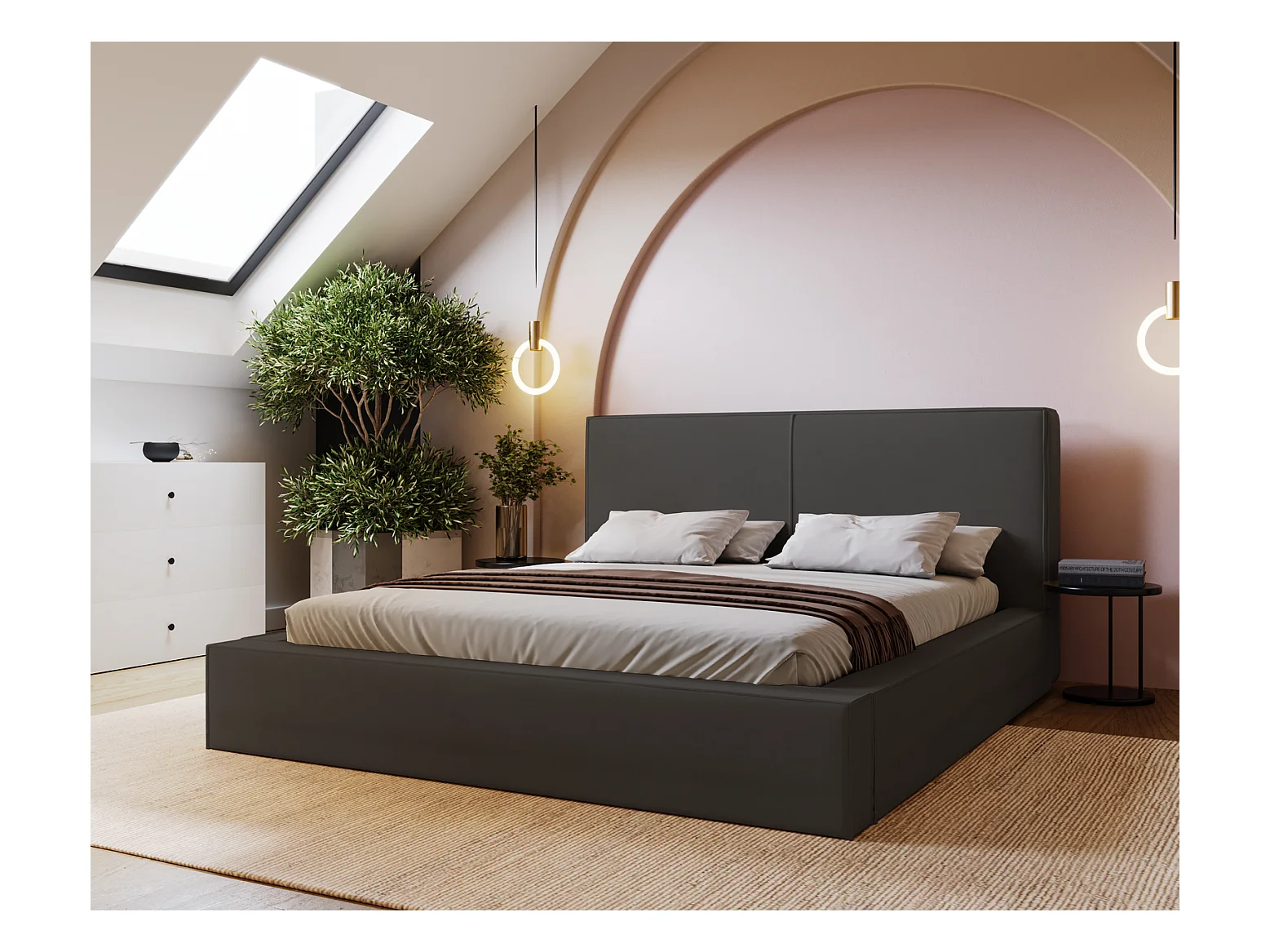 Emporius Morin Polsterbett 160x200 - Doppelbett 160x200 mit Bettkasten - Dunkelgrau (Amor Velvet 4321)