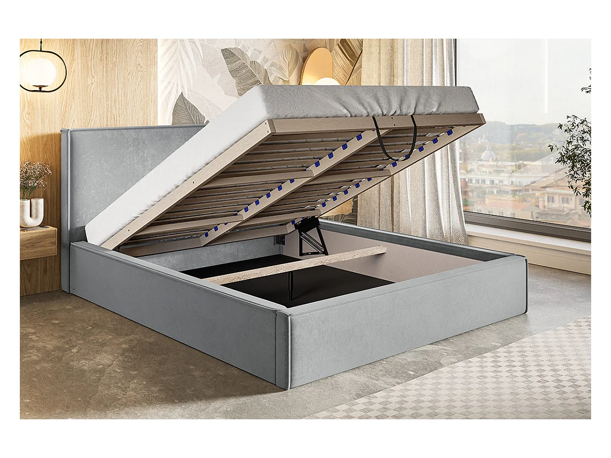 Emporius Polsterbett 140x200 Kyoto - Doppelbett vom Hersteller, Samtstoff, Bettkasten, Lattenrost - bett Bouclé Schwarz (Anthology 19)
