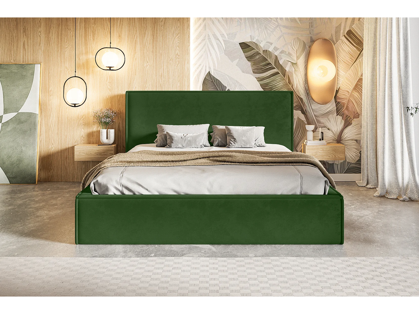 Emporius Polsterbett 140x200 Kyoto - Doppelbett vom Hersteller, Samtstoff, Bettkasten, Lattenrost - bett Grün (Amor Velvet 4311)