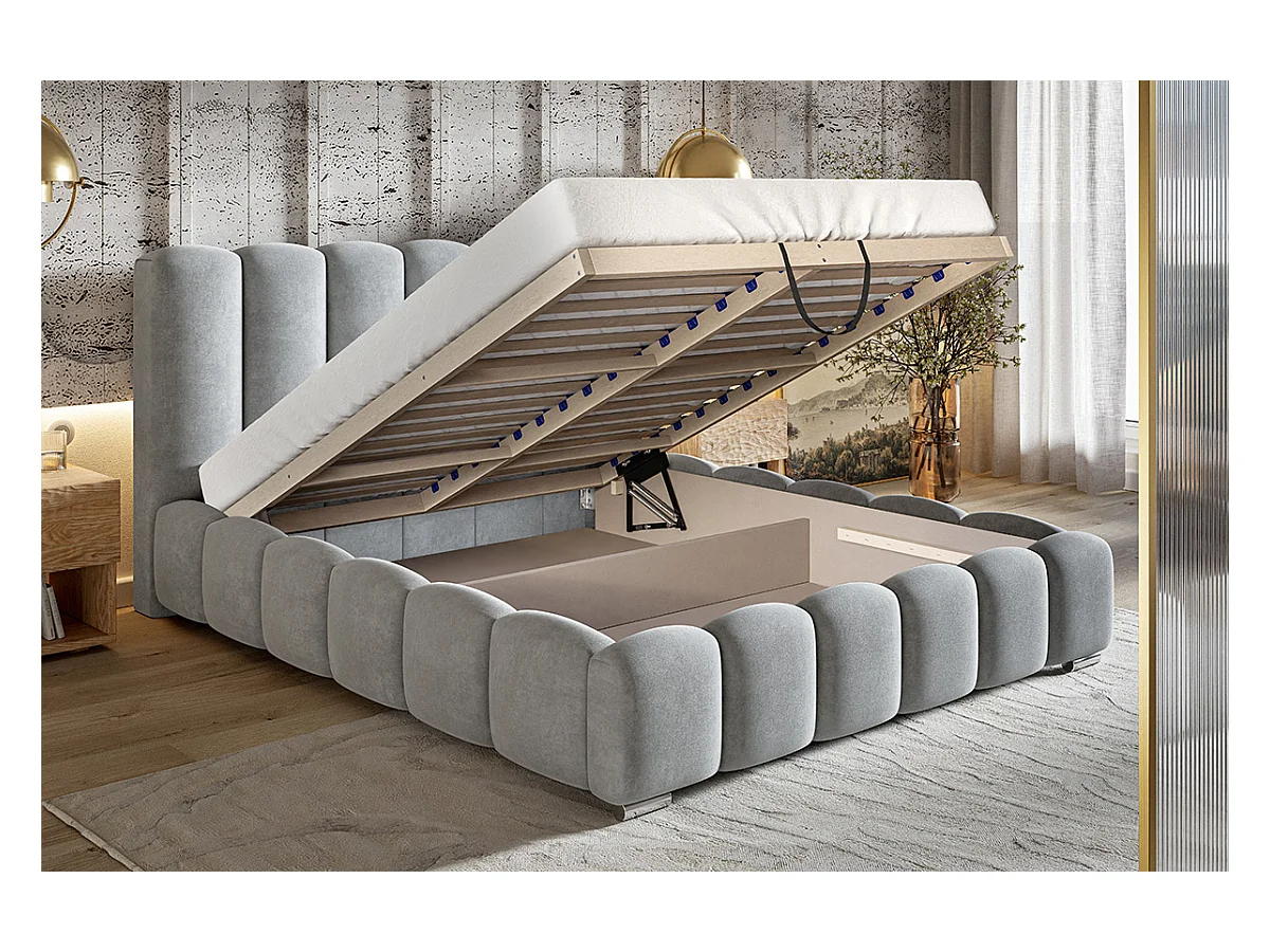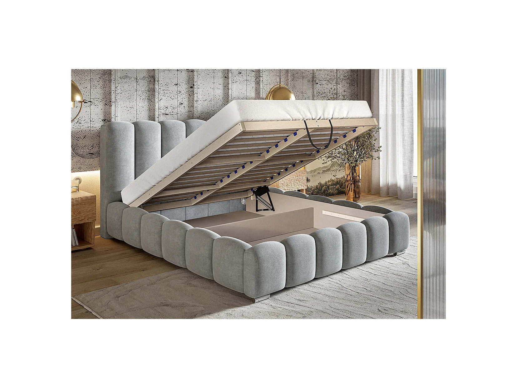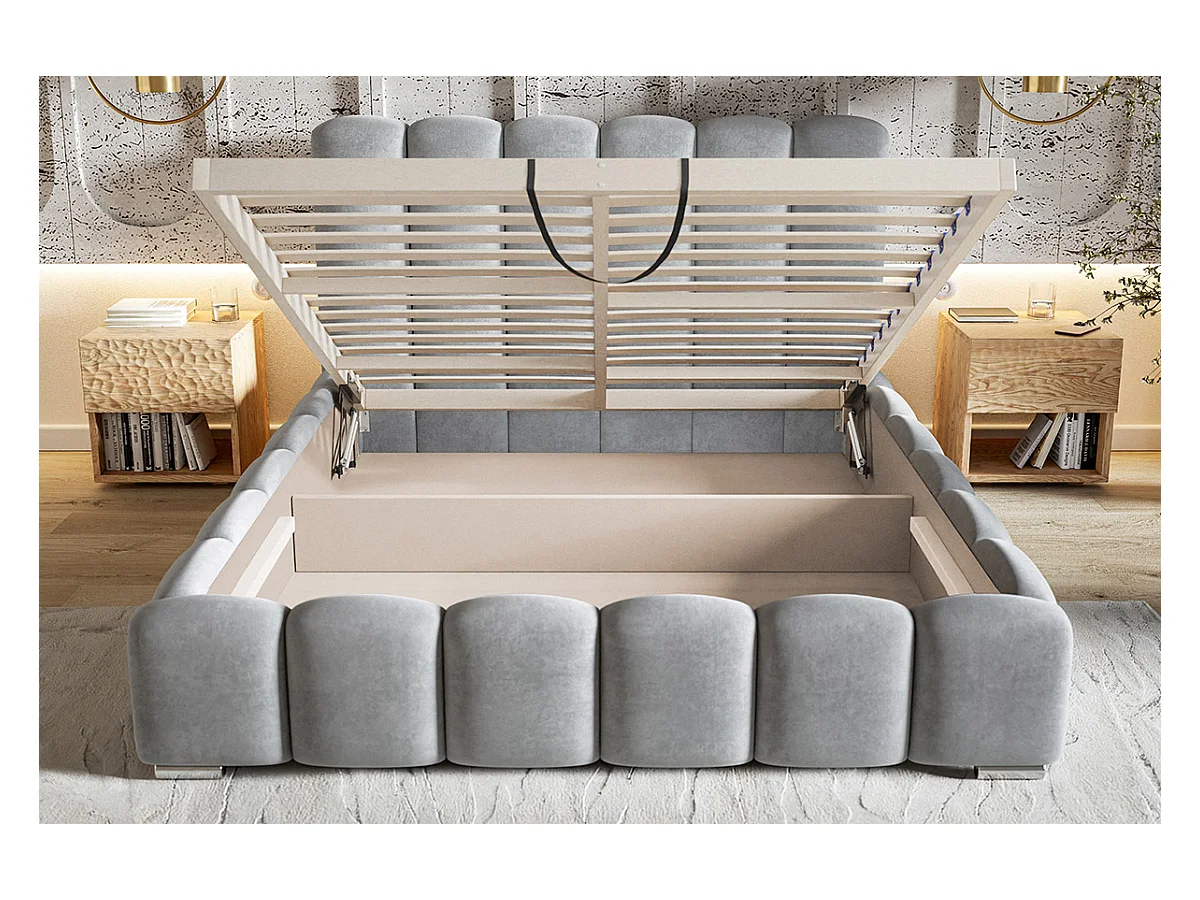 Emporius Polsterbett 140x200 Pearl, Doppelbett, Bettkasten, Lattenrost - Velvet Beige (Amor Velvet 4304)