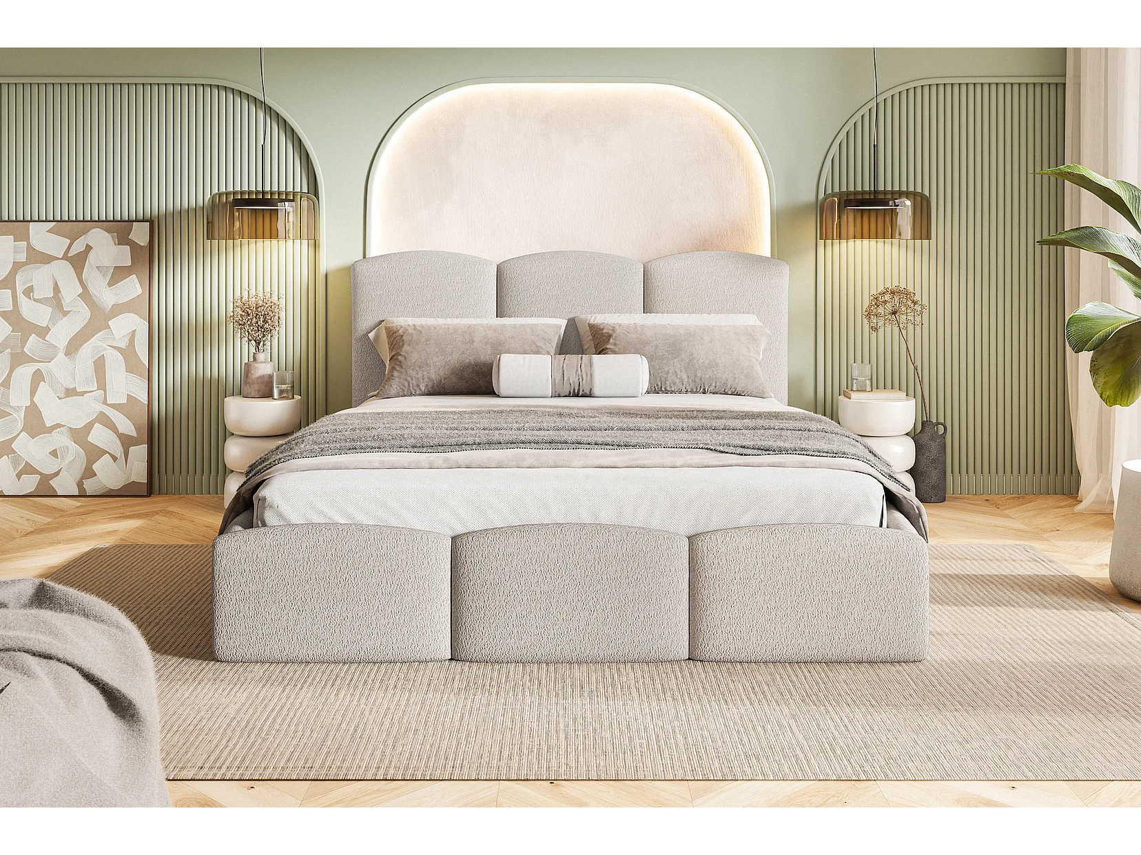Emporius Polsterbett 140x200 Roma Slim - Bett vom Hersteller, mit Bettkasten, Bouclé stoff, dickem Schaumstoff (Beige - Anthology 3)