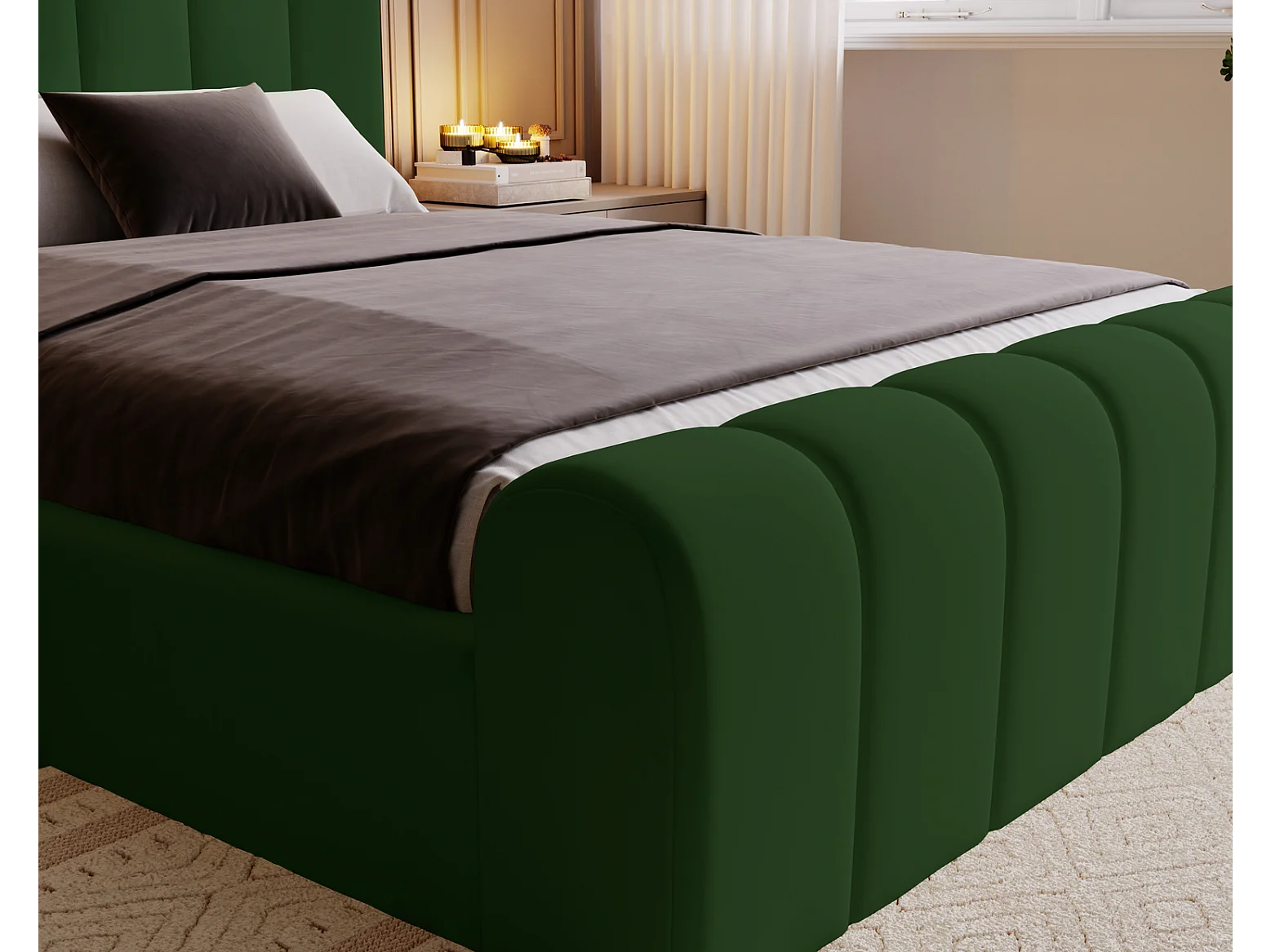 Emporius Polsterbett 140x200 Valetta - Bett mit Bettkasten, Lattenrost & Kopfteil - Hersteller, Doppelbett 140x200 velvet (Grün - Amor Velvet 4311)