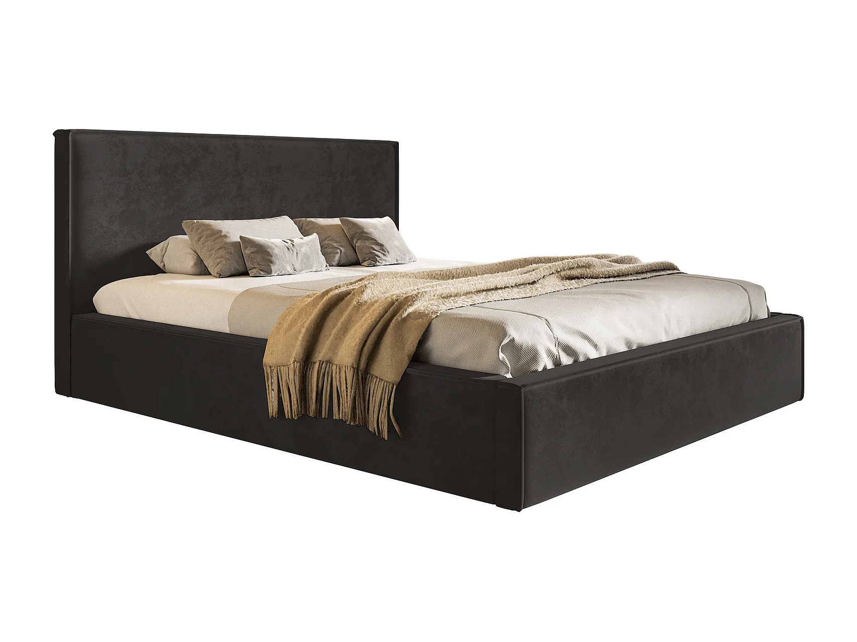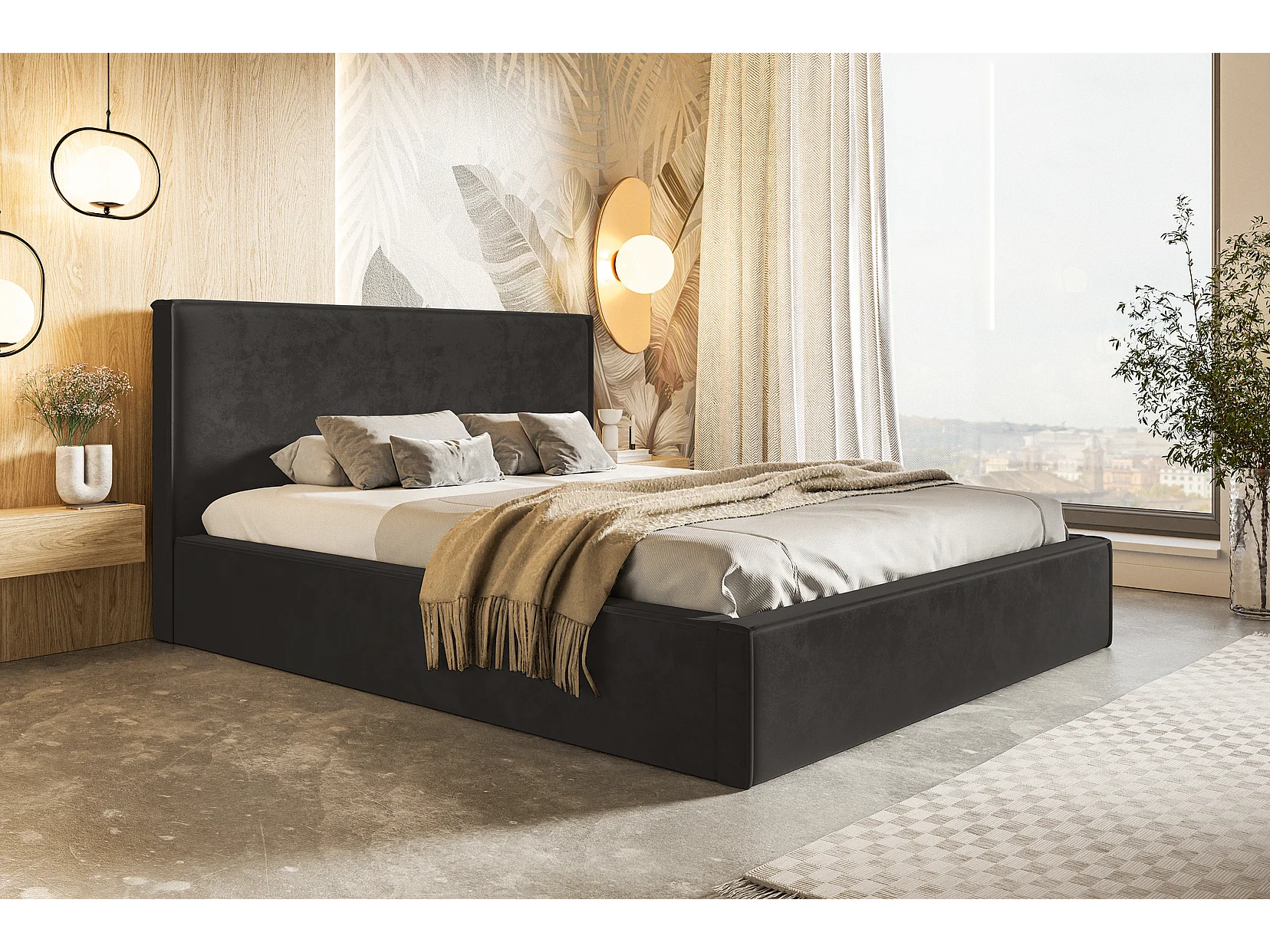 Emporius Polsterbett 160x200 Kyoto - Doppelbett vom Hersteller, Samtstoff, Bettkasten, Lattenrost - bett Schwarz (Amor Velvet 4322)