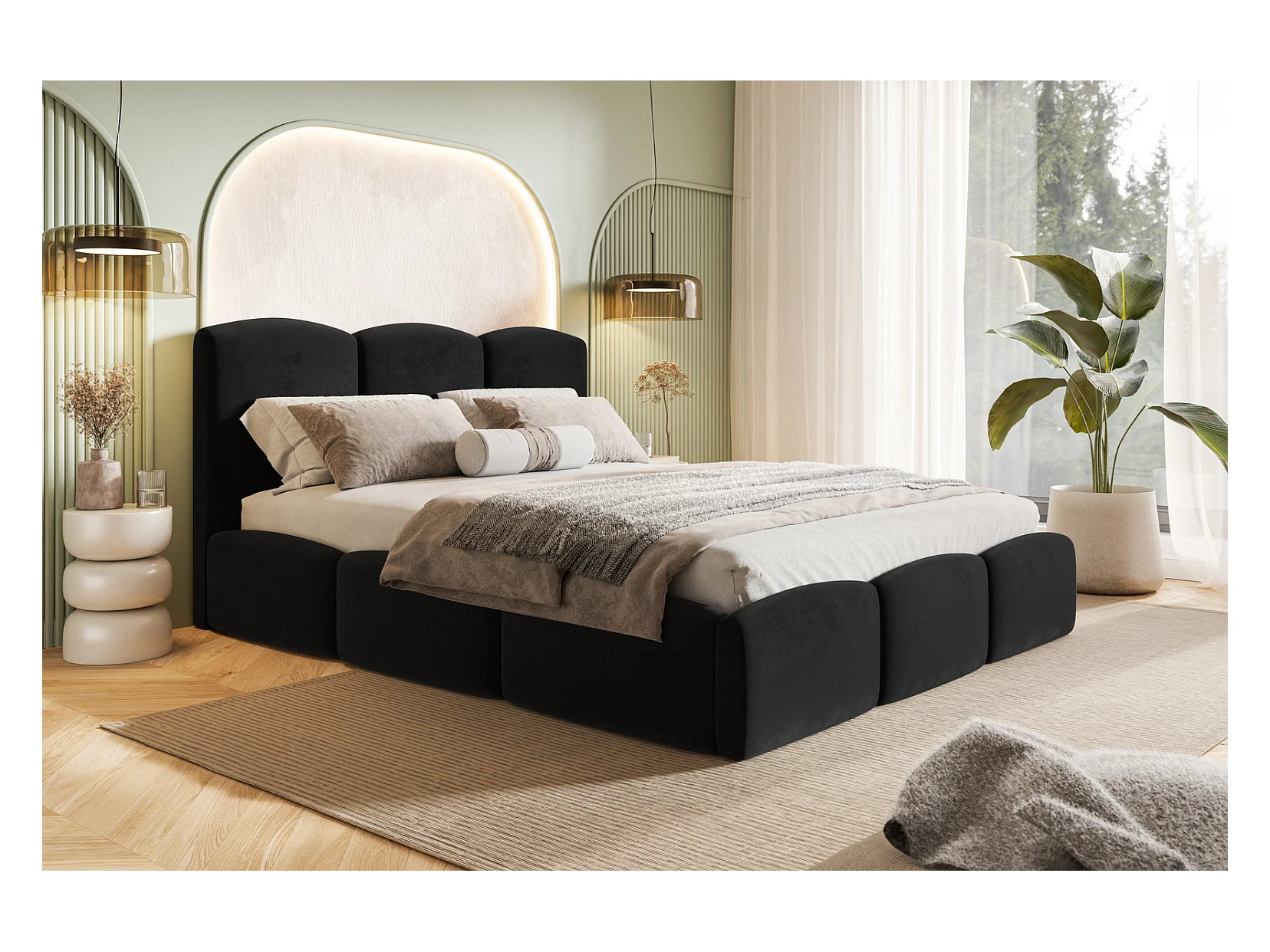 Emporius Polsterbett 160x200 Roma Slim - Bett vom Hersteller, mit Bettkasten, Velvet stoff, dickem Schaumstoff (Schwarz - Amor Velvet 4322)