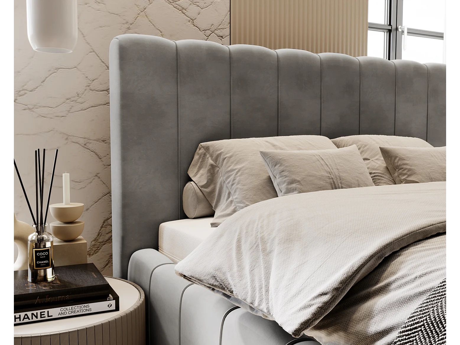 Emporius Polsterbett 160x200cm Lisbon - Bett mit Lattenrost, Bettkasten, Kopfteil - Schlafzimmerbett, doppelbett 160x200 - Velvet Grau (Magic Velvet 2217)