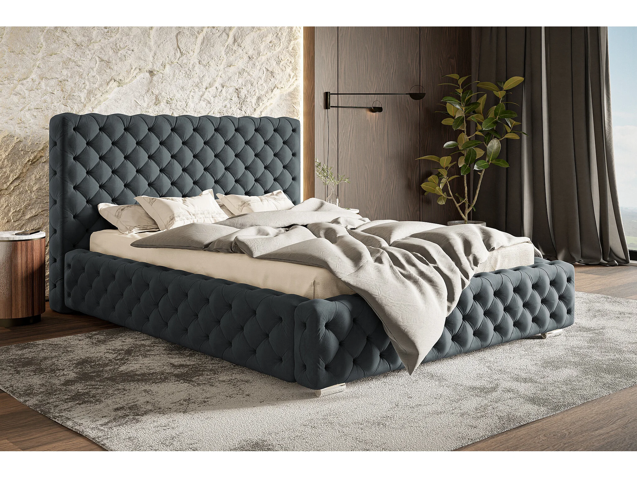 Polsterbett 180x200 cm Adonis - Chesterfield, Glamour - Polsterbett mit Bettkasten - Dunkelgrau (Jasmine 96)