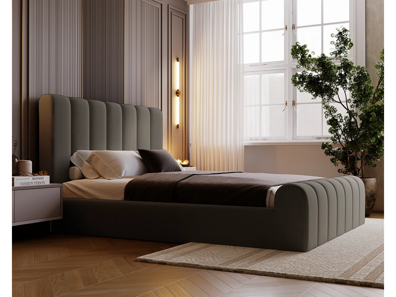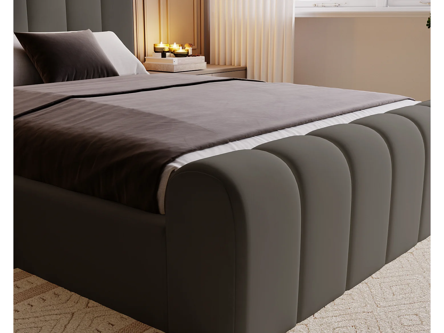 Emporius Polsterbett 180x200 Valetta - Bett mit Bettkasten, Lattenrost & Kopfteil - Hersteller, Doppelbett 180x200 velvet (Dunkelgrau - Amor Velvet 4321)