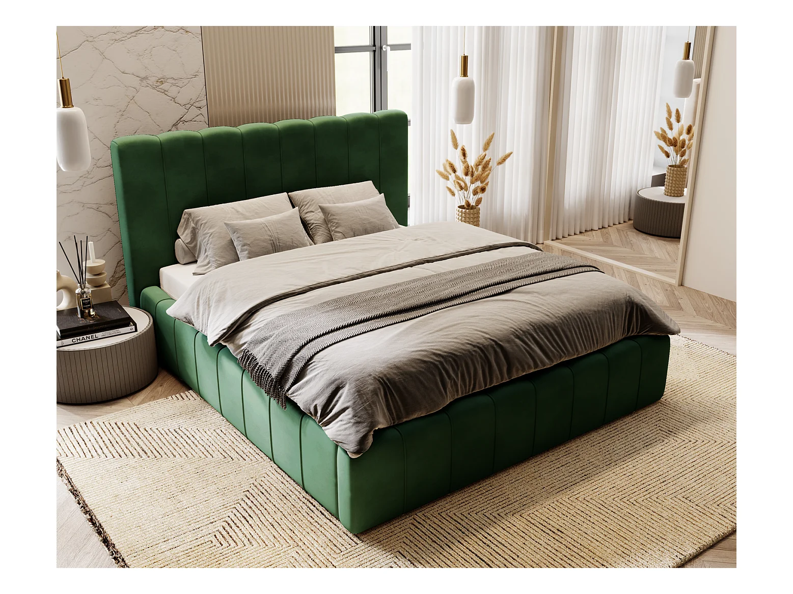 Emporius Polsterbett 180x200cm Lisbon - Bett mit Lattenrost, Bettkasten, Kopfteil - Schlafzimmerbett, doppelbett 180x200 - Velvet Grün (Magic Velvet 2225)