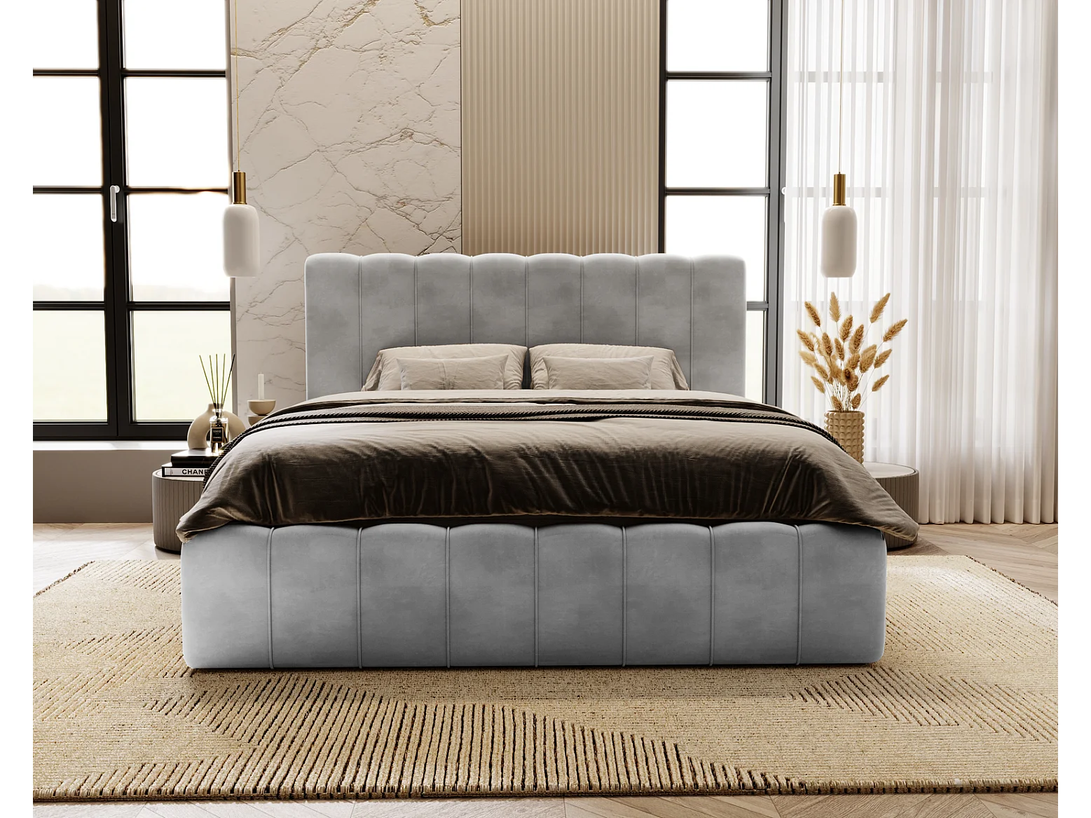 Emporius Polsterbett 180x200cm Lisbon - Bett mit Lattenrost, Bettkasten, Kopfteil - Schlafzimmerbett, doppelbett 180x200 - Velvet Hellgrau (Magic Velvet 2218)