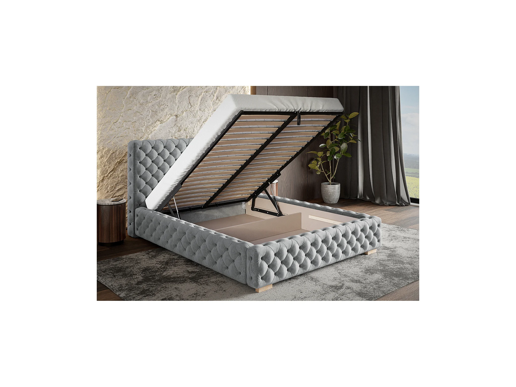 Polsterbett 200x200 cm Adonis - Chesterfield, Glamour - Polsterbett mit Metall-Lattenrost - Dunkelgrau (Jasmine 96)