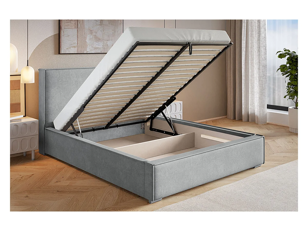 Emporius Polsterbett 200 x 200 cm Sydney, Bettkasten, Lattenrost, Bett mit Kopfteil - Velvet Grau (Amor Velvet 4318)