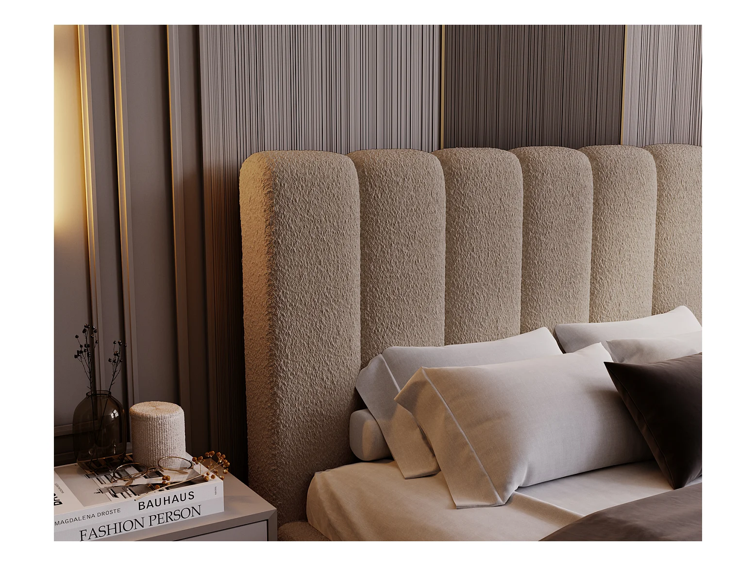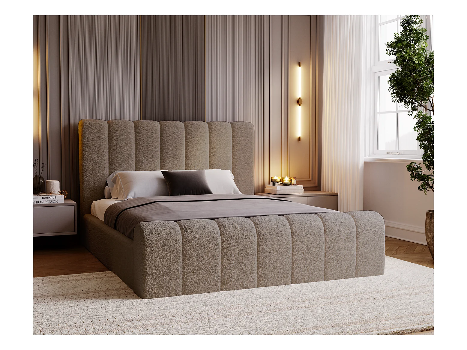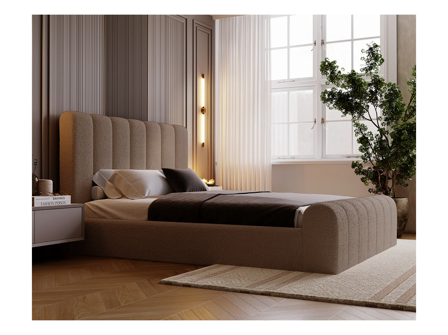 Emporius Polsterbett Bouclé 180x200 Valetta - Bett mit Bettkasten, Lattenrost & Kopfteil - Hersteller, Doppelbett 180x200 (Braun - Anthology 5)