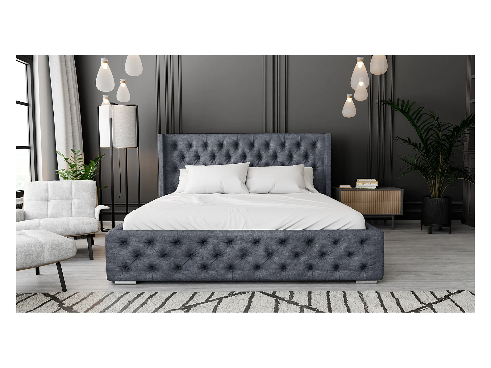 Emporius Polsterbett mit Lattenrost 160x200 Rolia - Doppelbett, Stauraum, Kopfteil - Schlafzimmer, Bettkasten - Velvet Dunkelgrau (Paros 06)