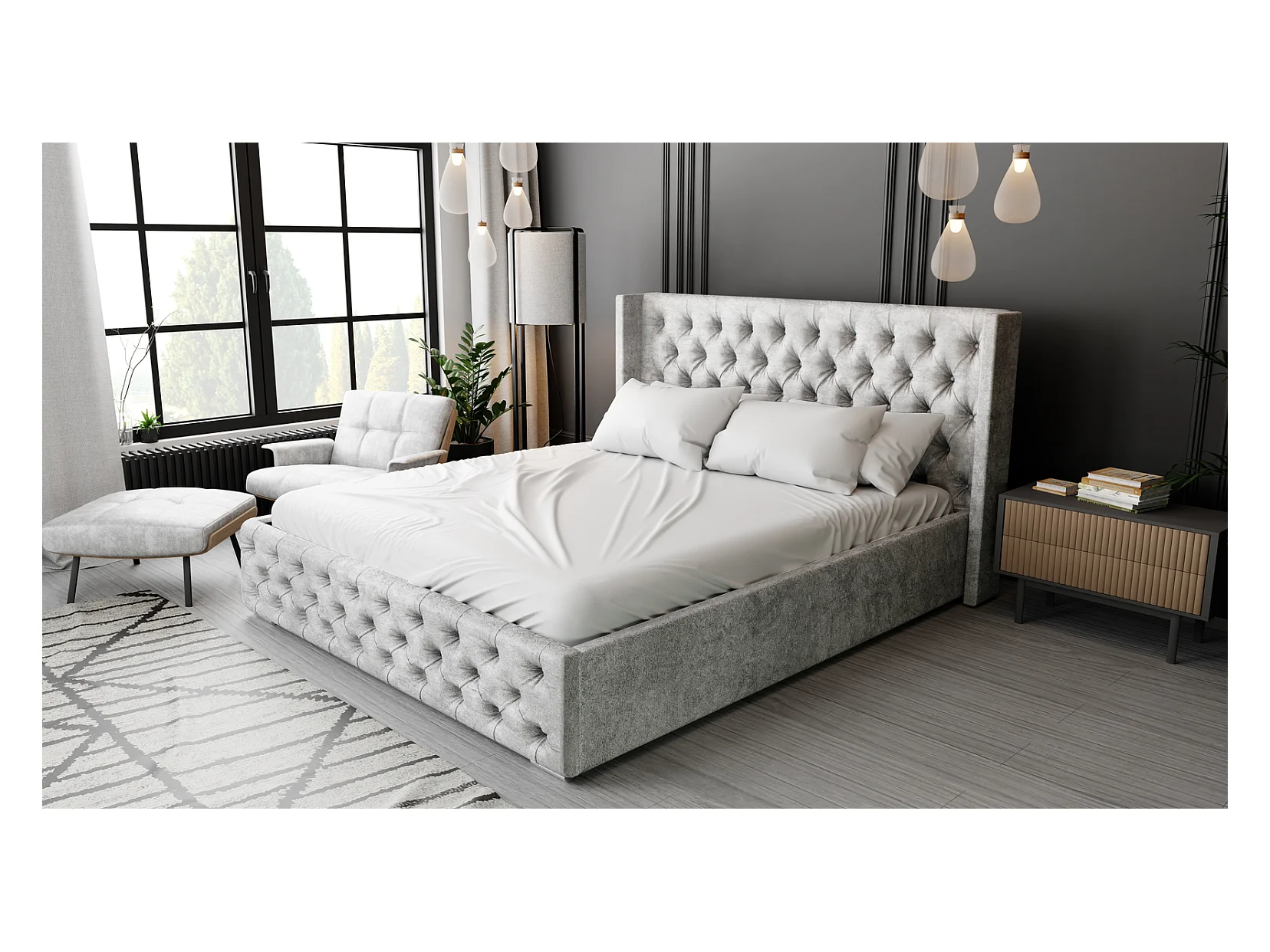 Emporius Polsterbett mit Lattenrost 160x200 Rolia - Doppelbett, Stauraum, Kopfteil - Schlafzimmer, Bettkasten - Velvet Grau (Paros 05)