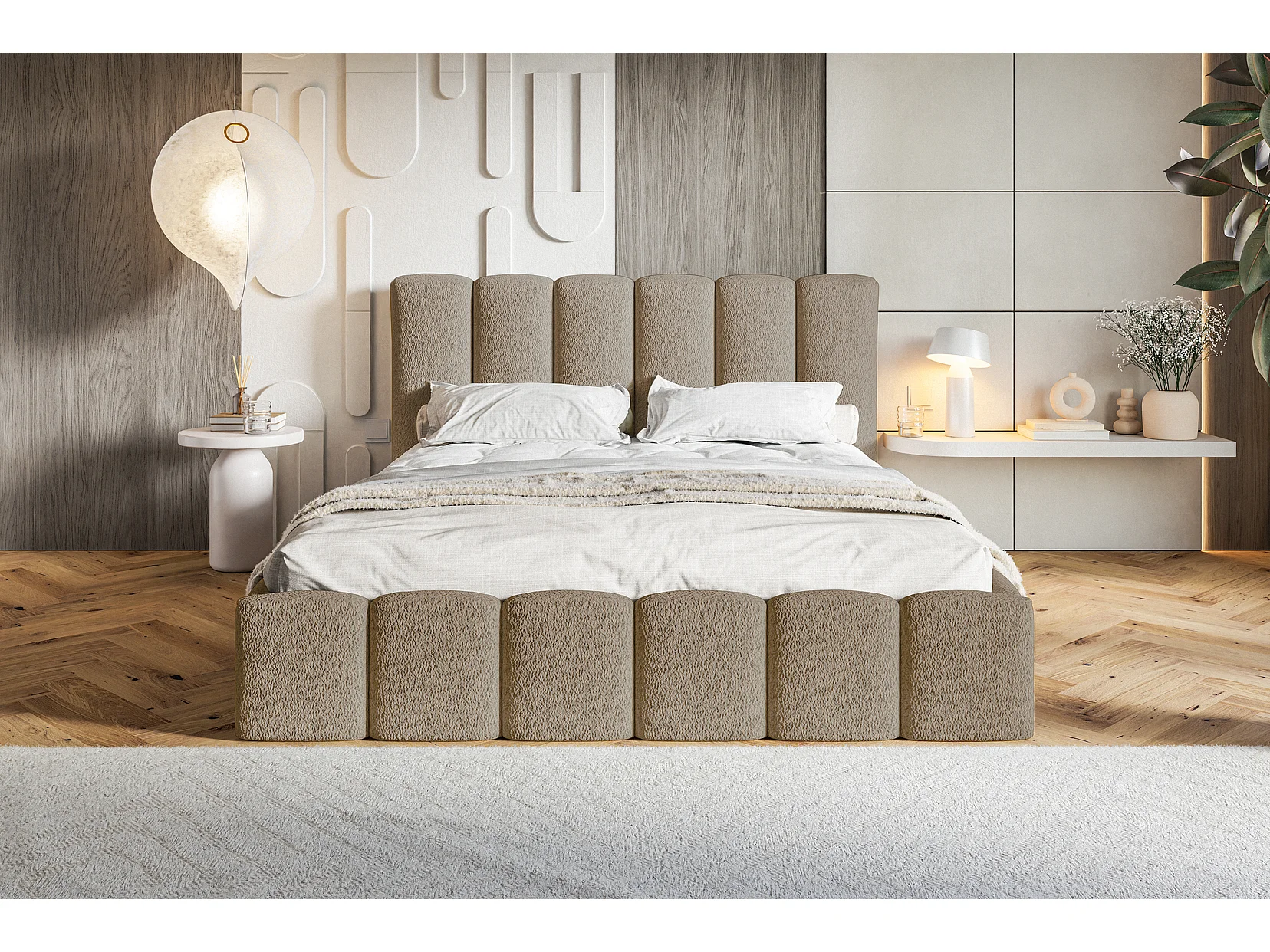 Emporius Polsterbett mit Lattenrost, Bettkasten - Doppelbett 140x200 cm Palermo - Bouclé stoff Braun (Anthology 5)