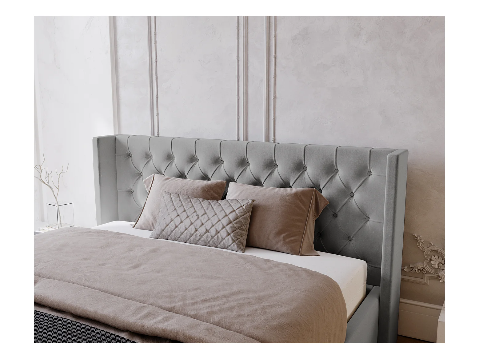 Emporius Rolia Doppelbett 160x200 - Polsterbett mit Bettkasten, Lattenrost - Samtstoff, velvet Hellgrau (Magic Velvet 2218)