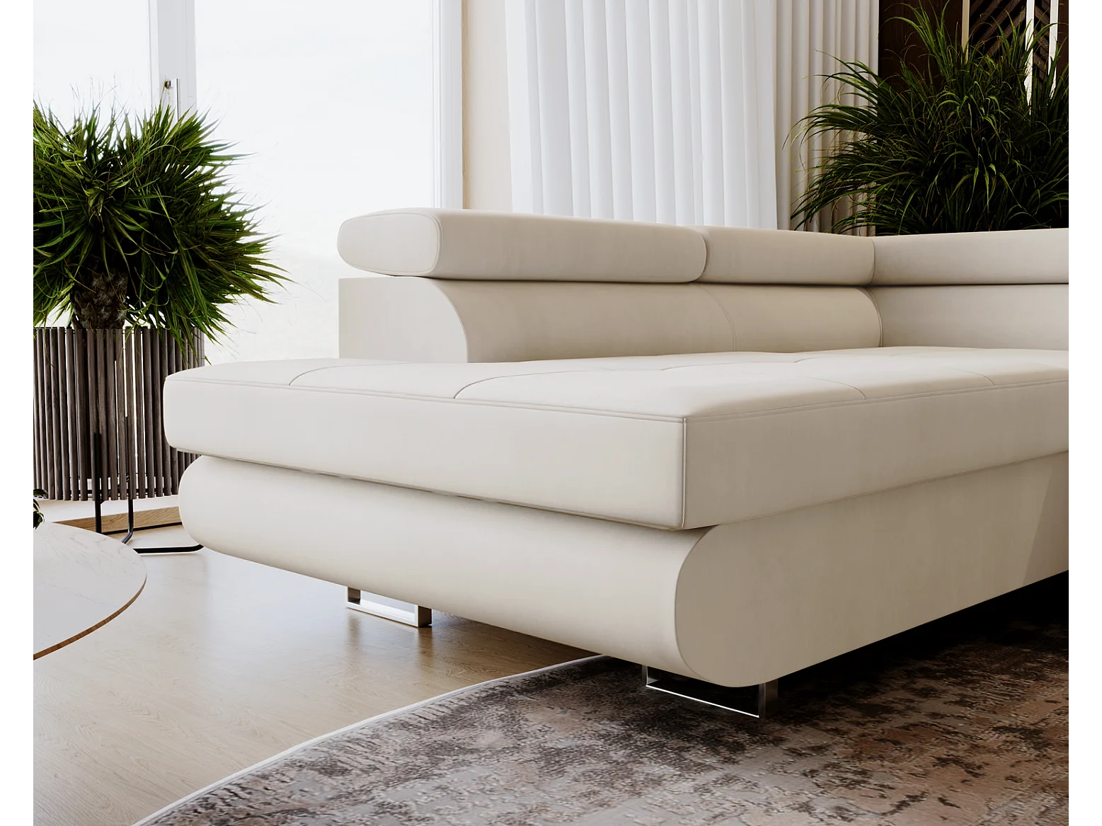 Emporius Sorlo U Links Ecksofa U-Form, Eckcouch mit Schlaffunktion, Bettkasten - Vanille (Amor Velvet 4323)
